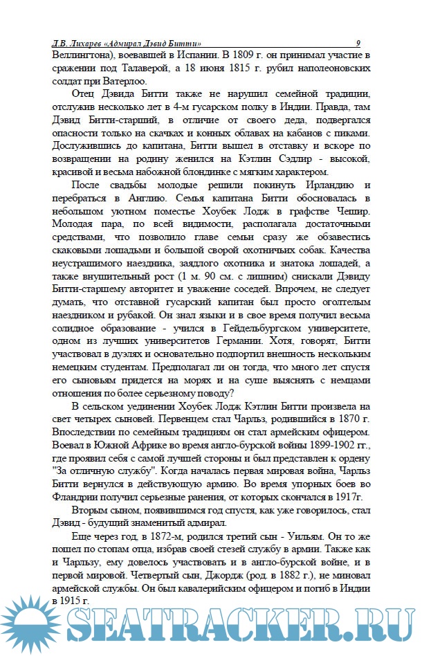 Описание: Монография доктора исторических наук, профессора Д. В. Лихарева представляет собой первое на русском языке научное исследование жизни и деятельности выдающегося английского флотоводца, одного из самых известных адмиралов первой мировой войны Дэвида Лонгфилда Битти. Биография адмирала дана на фоне развития военно-морских сил Великобритании, политики и дипломатии крупнейшей морской державы в первой трети XX в., решающих сражений в водах метрополии в годы первой мировой войны.