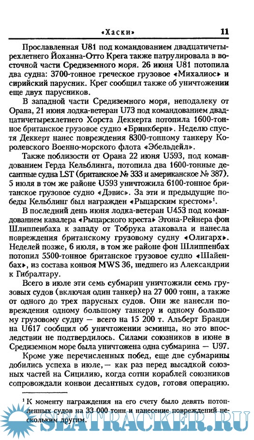 Описание: Исследование американского журналиста и историка Клэя Блэйра охватывает период с осени 1942 года по май 1945-го. Именно тогда вереница блестящих побед германских подводных сил, по мнению многих историков, едва не поставивших торговое судоходство союзников на грань катастрофы, внезапно оборвалась, сменившись цепью жестоких поражений. И поражения эти уже не прекращались до самого момента окончательной капитуляции Германии.Ho кем была выиграна «Битва за Атлантику» — британскими н американскими криптографами, расшифровавшими секретные радиокоды «Кригсмарине», или многократно превосходящей морской и воздушной мощью союзников? Давая максимально подробную и яркую картину немецкой подводной кампании в Атлантике, автор настоящей работы предоставляет читателю возможность самому сделать свой вывод.