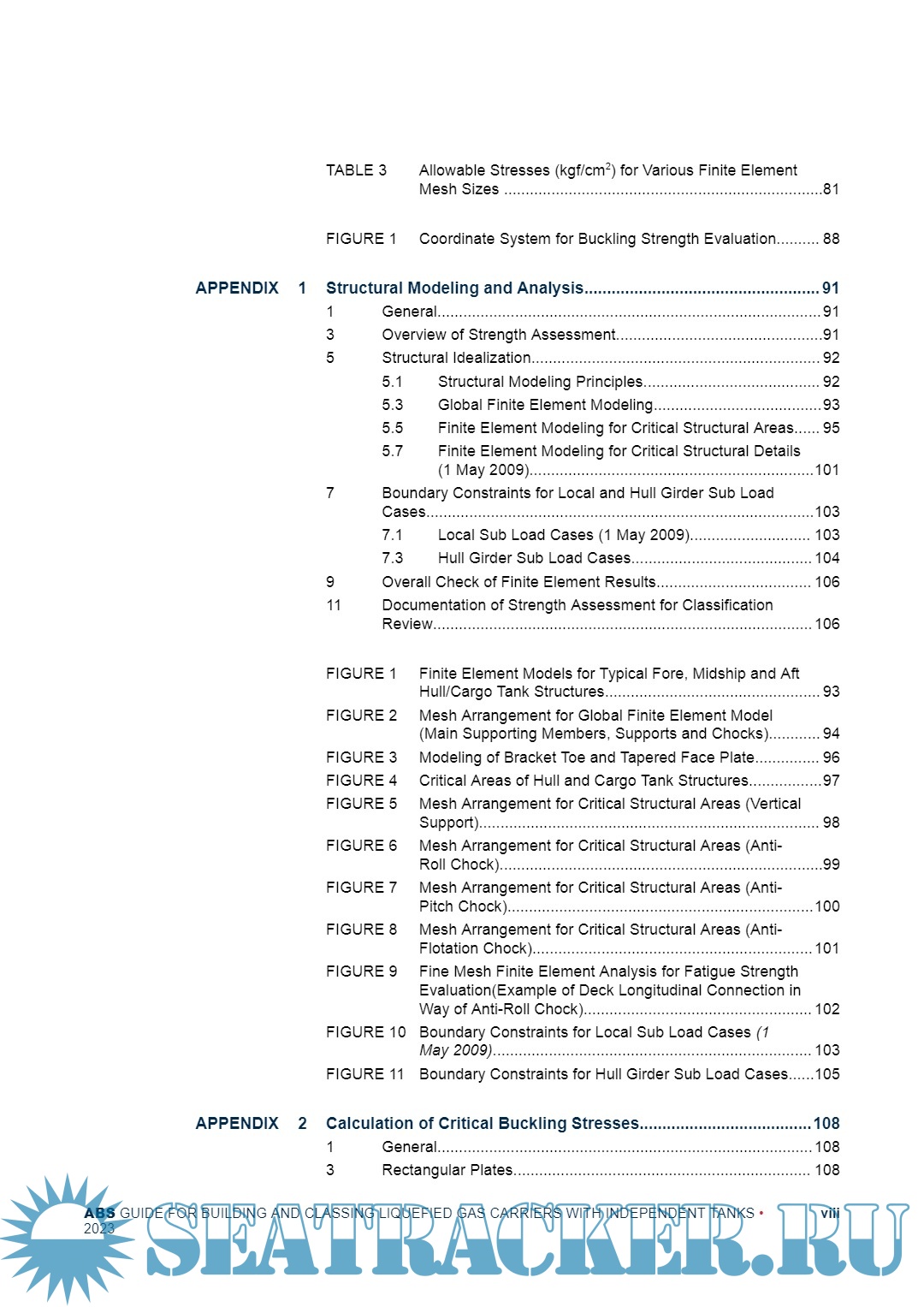 Year: 2023 Language: English Author: American Bureau of Shipping Genre: Guide Publisher: American Bureau of Shipping Format: PDF Quality: eBook Pages count: 172 Description: This Guide provides criteria that can be applied in the Classification of the hull structure of a liquefied gas carrier with independent tanks. The strength criteria contained herein are to be used to verify compliance with the structural analysis requirements in the International Code for the Construction and Equipment of Ships Carrying Liquefied Gases in Bulk (IGC Code) as a condition of classification. These strength criteria are to be considered supplementary to those for corresponding aspects of Classification as given in Part 5C, Chapter 8 of the ABS Rules for Building and Classing Marine Vessels (the Rules). The Owner may select to use either this Guide or Part 5C, Chapter 8 of the Rules, however the Classification symbol, SH, (signifying compliance with the SafeHull based criteria in this Guide) will only be granted when the design is based on the criteria of this Guide.