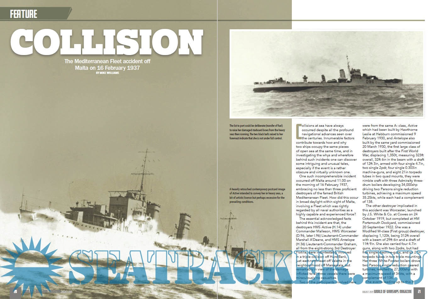 Description: This 56-page magazine will cover such battles and battleships starting with the steel-clad warships of the 1900s, up to the modern day rulers of the seas – the highly sophisticated aircraft carriers and submarines of today.We will have a Naval news section from around the world, features on famous people, conflict at sea, fascinating historical accounts and exciting places of interest that you can visit today. World of Warships will also feature some excellent naval paintings from the brushes and easels of leading Naval artists, plus superb, highly detailed, fold-out, triple gatefolds, featuring profile artworks in every issue, created by Andrew Hay.The main thrust will of course be warships, encompassing destroyers, dreadnoughts, frigates, carriers, submarines et al, and their place in global naval history.