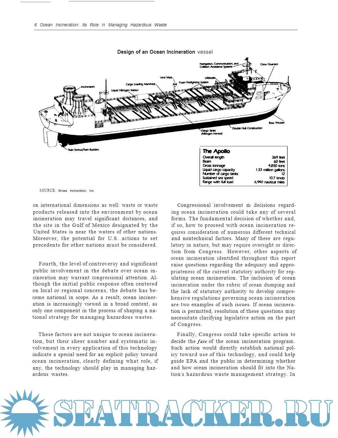Description: This assessment of ocean incineration includes consideration of the adequacy of regulations; risks to human health and the marine environment relative to the risks of comparable activities; existing and emerging alternatives; the capabilities and limitations of ocean incineration in managing hazardous wastes; and how its use might affect efforts to develop superior waste treatment and reduction practices.