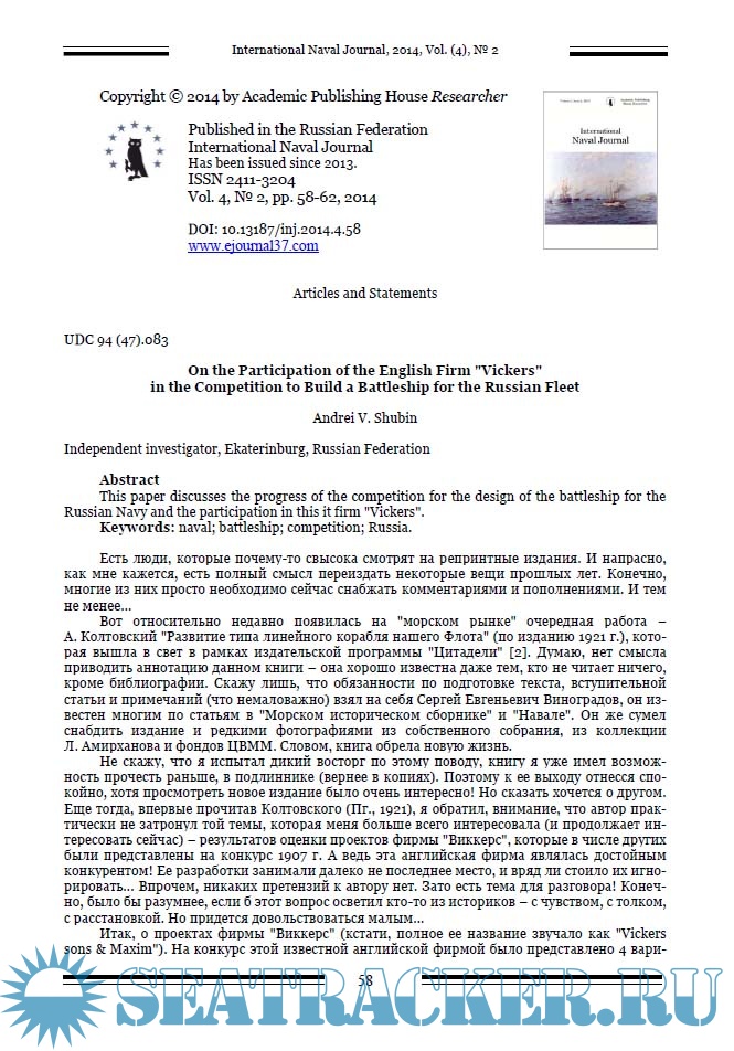 International Naval Journal за 2014 год (номера 3 и 4)