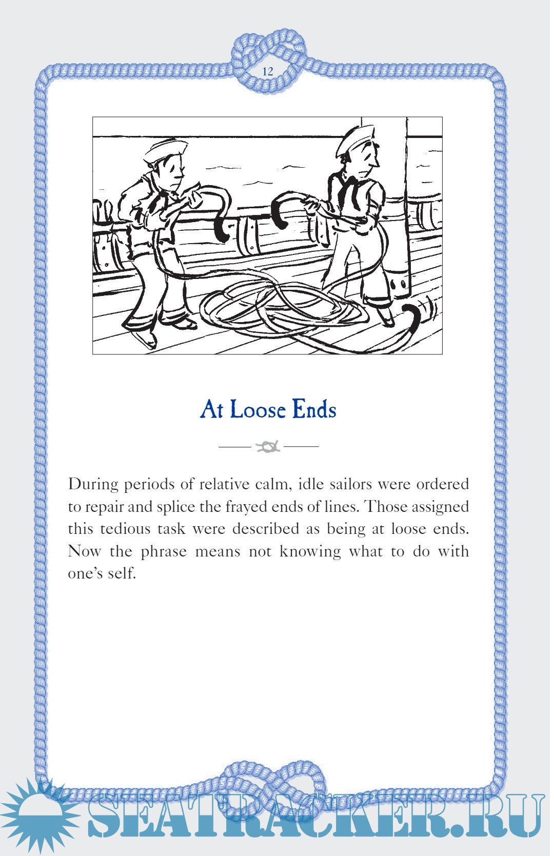 Year: 2018 Language: English Author: C. Barrett & V. Barrett Genre: Dictionary Publisher: The Rowman & Littlefield ISBN: 78-1-4930-4228-9 Format: PDF+EPUB Quality: eBook Pages count: 193 Description: The English language is chock-full of nautical expressions. The earth is, after all, the water planet. Words and phrases coined by seamen trip off the tongue. A look at old maps shows the cross-hatching of age-old naval and trade routes. Textiles, spices, indigo, and other sought after goods emerged from cargo holds. What also came ashore was the language of sailors. This inherited idiomatic nautical language is spoken so often in conversation that it goes unnoticed. Filibusters are an invention of pirates, not the US Senate, and the first skyscrapers were the tallest sails on a ship. Three Sheets to the Wind is an illustrated guide to your language, so that the next time you call your friend a “loose cannon” you know it is you who is talking like a sailor.