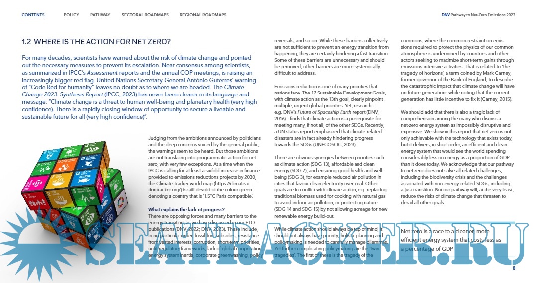 Year: 2023 Language: English Author: DNV Genre: Documentation Format: PDF Quality: eBook Pages count: 52 Description: This Pathway to Net-Zero Emissions (PNZ) is effectively a blue- print for how that target can still be hit within the bounds of technical and political feasibility, and within the context of mainstream economic growth forecasts. However, our PNZ is also a blueprint for how to progress towards the target even though we may not quite reach it. Every tenth of a degree of warming counts, as the IPCC has outlined dramatically.