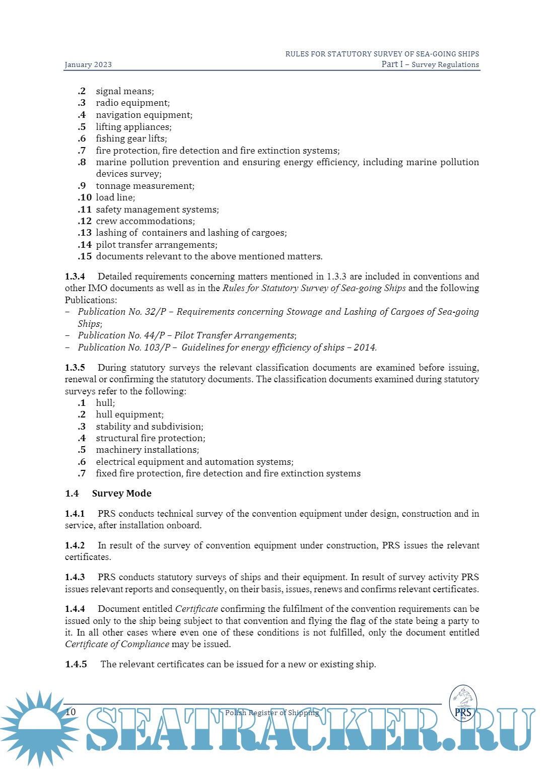 Description: Rules for Statutory Survey of Sea-going Ships apply to all sea-going ships on which PRS