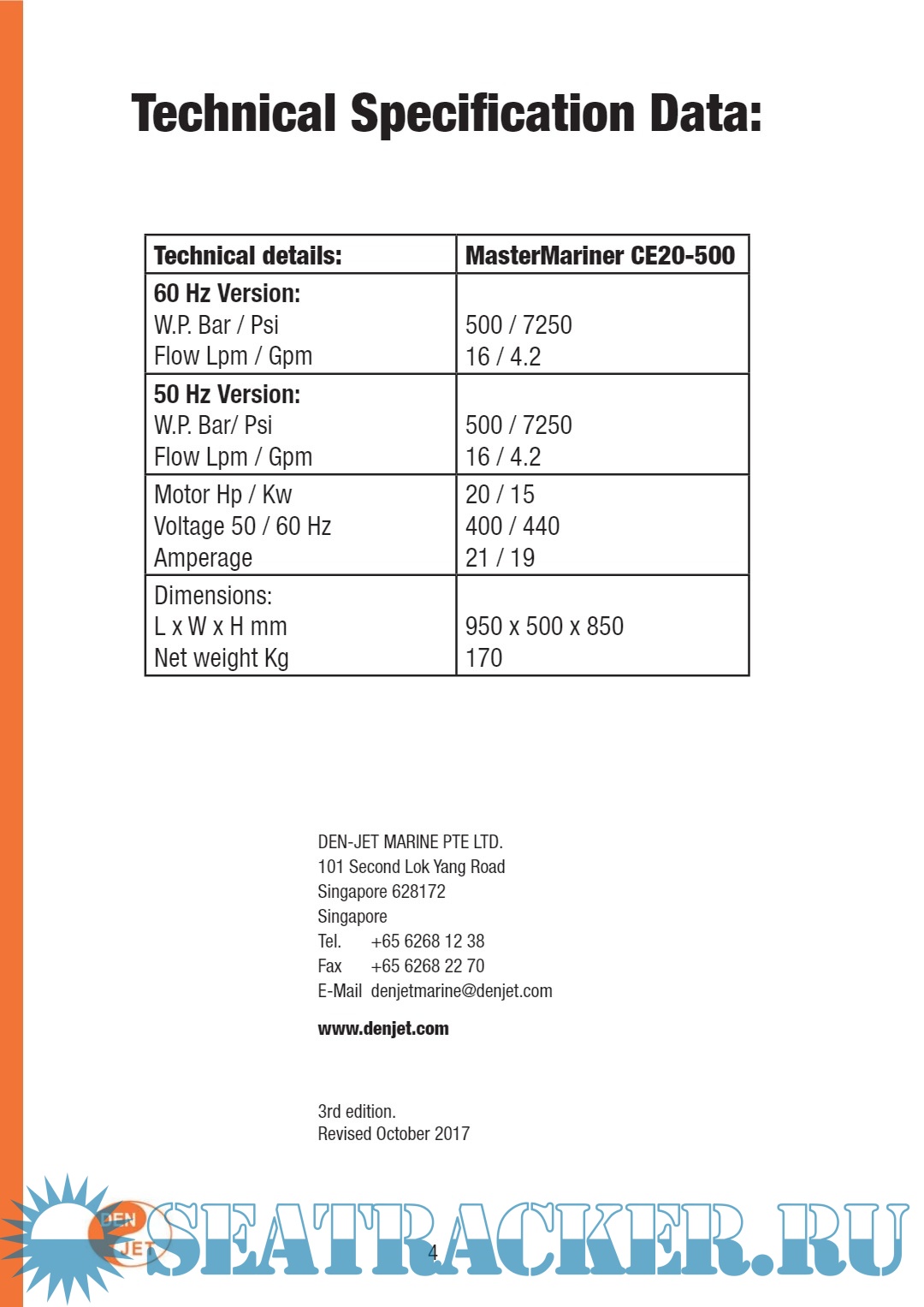 DEN-JET CE20-500 WATERBLASTER (MasterMariner500) - Operation and Maintenance Manual
