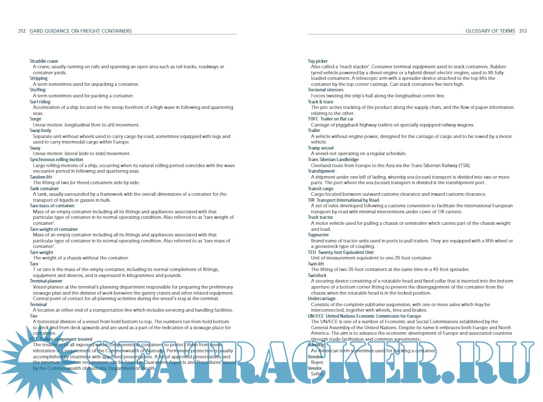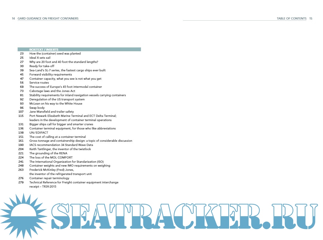 Year: 2016 Language: English Author: Gard AS Genre: Technical book Format: PDF Quality: eBook Pages count: 171 Description: The Gard Guidance on Freight Containers covers intermodal transport and the handling of containers in its widest form, both in terms of operations, geographical differences and the underlying technology. Although every attempt has been made to be as complete and correct as possible, there will be occasions or circumstances when containers are being handled or transported differently to that described in this book Additional info: The first two chapters deal with the historical development of container shipping. This is a summary of information obtained from various books and articles published on this topic. For those interested in further reading and in learning the ’full story‘ of container shipping, some very interesting and worthwhile books are listed in the Bibliography. Chapter 3 looks at transport networks and the various ways of shipping containers, which in addition to seagoing transport also includes barge, rail and road transport.