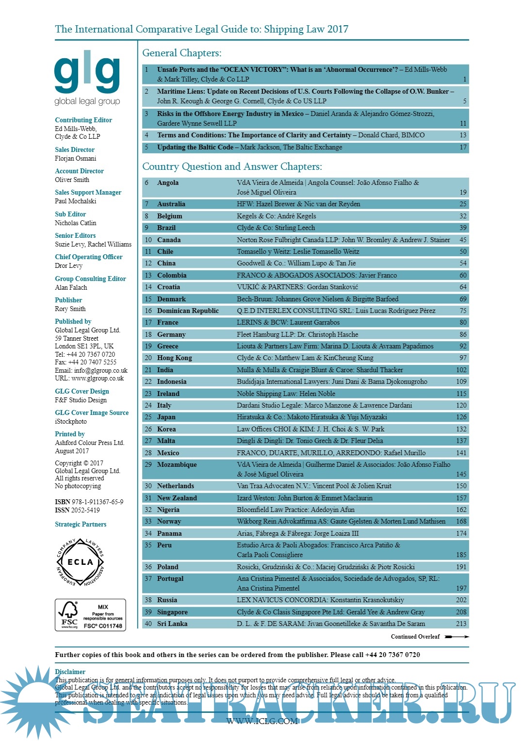 Special thanks are reserved for the contributing editor Ed Mills-Webb of Clyde & Co LLP for his invaluable assistance.