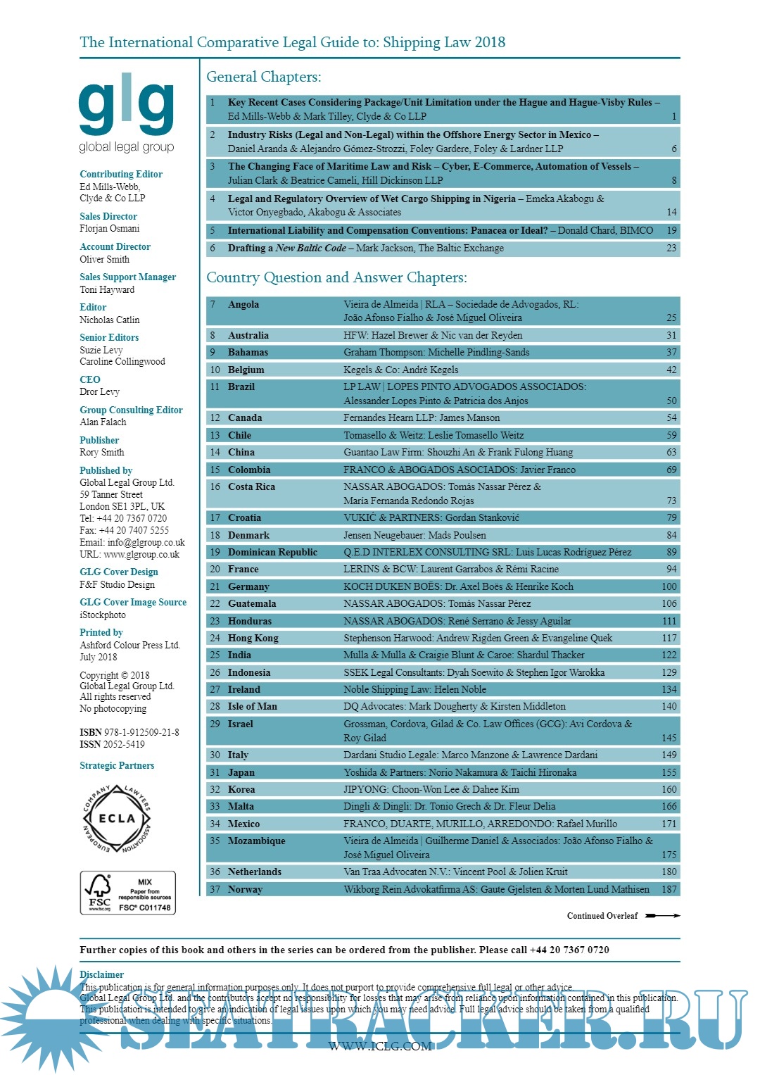 Year: 2018 Language: English Author: Global Legal Group Genre: Practical guide Publisher: Global Legal Group Edition: 6th Edition ISBN: 978-1-912509-21-8 Format: PDF Quality: eBook Pages count: 294 Description: A practical cross-border insight into shipping law Welcome to the sixth edition of The International Comparative Legal Guide to: Shipping Law. This guide provides corporate counsel and international practitioners with a comprehensive worldwide legal analysis of shipping laws and regulations. It is divided into two main sections: Six general chapters, which explore topical issues affecting shipping law from a cross-border perspective. Country question and answer chapters. These provide a broad overview of common issues in shipping laws and regulations in 47 jurisdictions. All chapters are written by leading shipping lawyers and industry specialists, and we are extremely grateful for their excellent contributions. Special thanks are reserved for the contributing editor Ed Mills-Webb of Clyde & Co LLP for his invaluable assistance. Global Legal Group hopes that you find this guide practical and interesting. The International Comparative Legal Guide series is also available online at www.iclg.com.