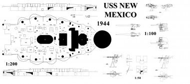 Описание: 21 лист чертежей линкора США New Mexico BB-40