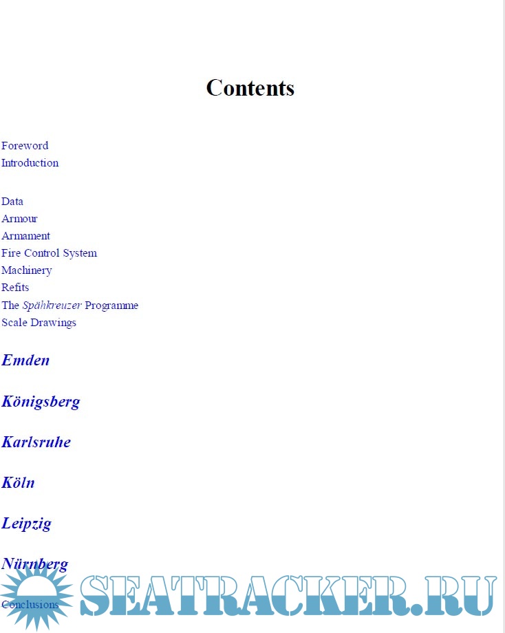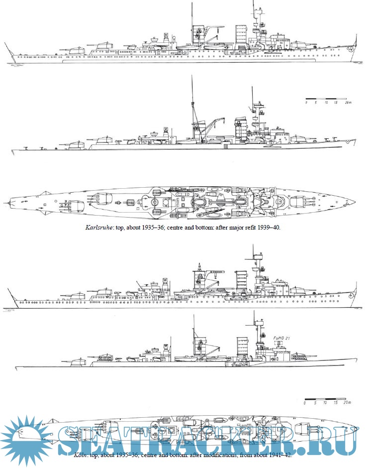 This volume is devoted to the six ships from Emden to Nürnberg that were built between the wars. They were primarily intended for commerce-raiding, but the war gave them few opportunities for such employment, although they did provide useful support for key naval operations in the Baltic and North Sea. Two were lost in the 1940 Norway campaign, but the remainder survived for most of the conflict.