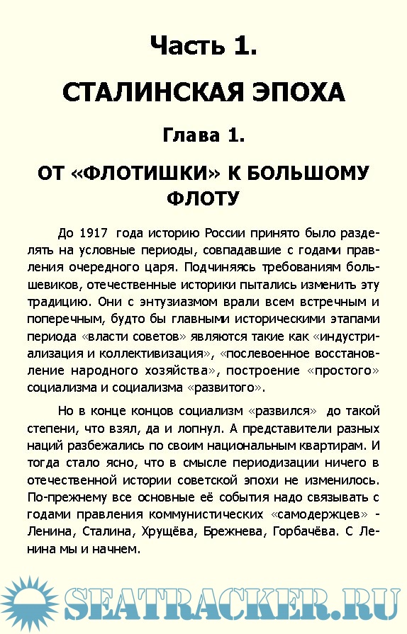 СОДЕРЖАНИЕ ПРЕДИСЛОВИЕ РЕДАКТОРА ЧАСТЬ 1. Сталинская эпоха Глава 1. От «флотишки» к Большому флоту Глава 2. Флот и война Глава 3. Нас Сталин вел к победе коммунизма Глава 4. Дело адмиралов ЧАСТЬ 2. Эпоха Хрущева Глава 1. Атомное крещение Глава 2. Какой флот строить? Глава 3. Гибель «Новороссийска» Глава 4. Смена флагмана Глава 5. Если завтра война Глава 6. Советский Нептун с атомным трезубцем ЧАСТЬ 3. Большой флот СССР Глава 1. Адмирал и его команда Глава 2. Военно-морская стратегия по Горшкову Глава 3. Атомное жало подводного трезубца Глава 4. Убийцы авианосцев Глава 5. Охотники за субмаринами Глава 6. Большой противолодочный флот Глава 7. Авианосец по-русски Глава 8. Кусачие морские насекомые Глава 9. Крылья над морем Глава 10. Черные береты Глава 11. Морская разведка и спецназ Глава 12. Подводная и надводная экзотика Глава 13. На фронтах холодной войны ЧАСТЬ 4. Отдельные недостатки или перманентный кризис? Глава 1. Усталые подлодки Глава 2. «Шведский комсомолец» Глава 3. Мятеж замполита ЭПИЛОГ: Плохие новые времена ПРИЛОЖЕНИЕ БИБЛИОГРАФИЯ