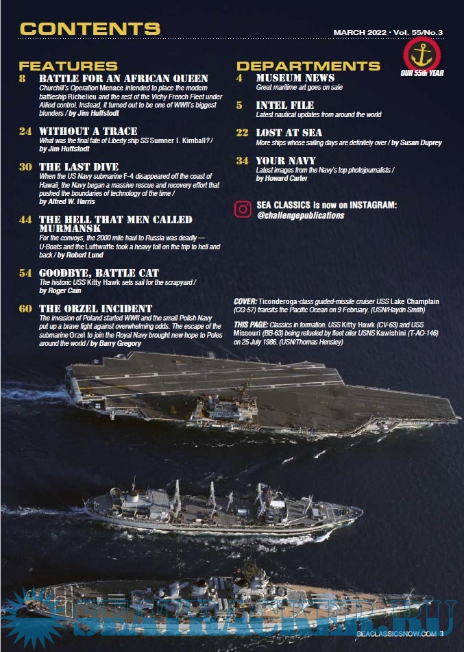 Description: Read about the world’s major sea battles and first-hand accounts from the men who fought and lived through them. From the early days of sailing vessels to the post-Cold War nuclear navies of today, Sea Classics has it all.