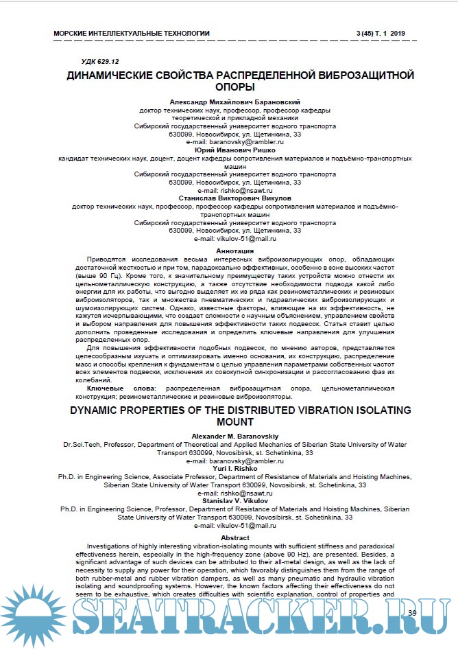 Морские интеллектуальные технологии 2019 № 3 часть 1