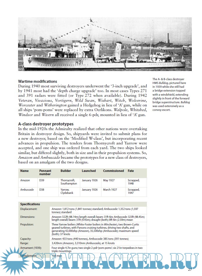 Year: 2010 Language: English Author: Dave McComb Genre: History Publisher: Osprey Publishing Edition: New Vanguard 246 Format: PDF Quality: eBook Pages count: 49 Description: The US Navy's most modern destroyers as it entered World War II were 100 ships from eleven classes introduced in the 1930s: 1,500-tonners and 1,850-ton destroyer leaders designed to conform to the 1930 London Naval Treaty, plus the successor 1,570-ton Sims class and the first-commissioned 1,620- and 1,630-tonners of the Benson and Gleaves classes. Collectively, these destroyers carried the Navy through the war's first year when the outcome was in doubt: while most 1,500-tonners and leaders were assigned to front line duty in the Pacific before being relegated to secondary assignments, the later Bensons and Gleaves became the standard destroyers for Atlantic and Mediterranean operations and remained prominent in the Pacific throughout the war. This volume describes the fascinating design story behind these developmental classes – from the constraints of peacetime treaties to advances in propulsion engineering and wartime modifications. With an operational overview of their service and tables listing all 169 ships by class, builder, and initial squadron, this is a definitive guide to the pre-war US destroyer classes.