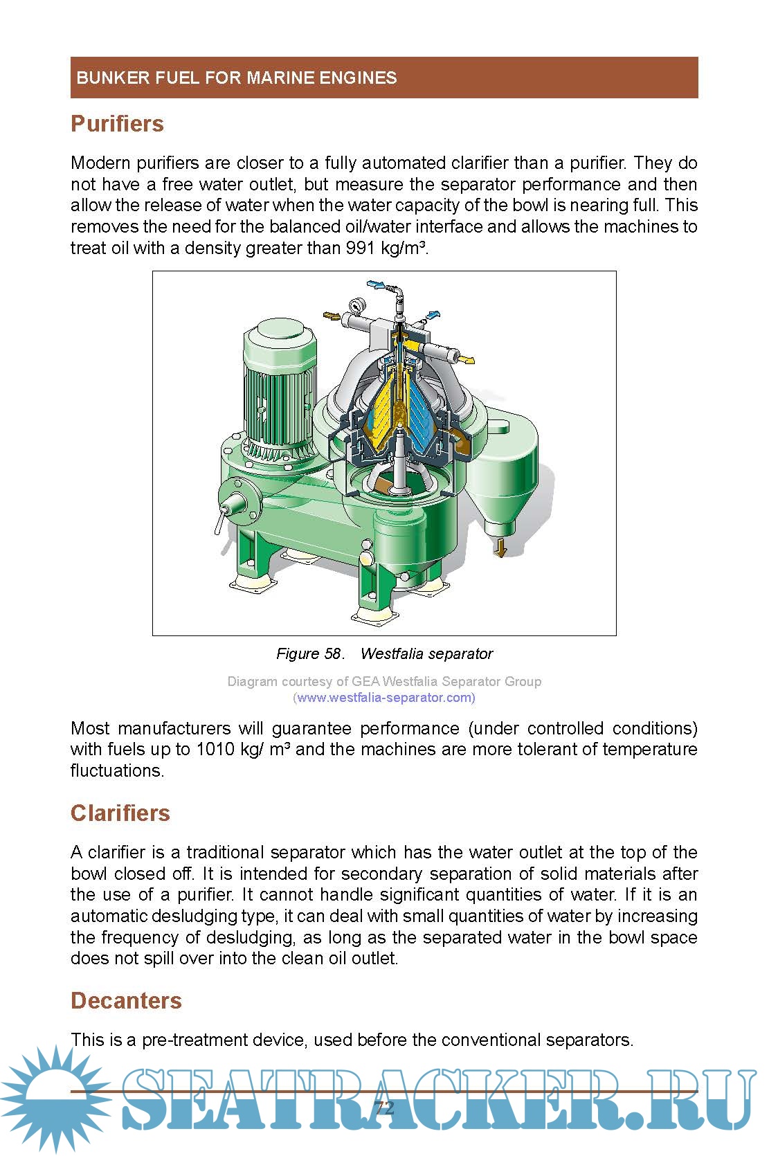 Fuel types and bunker quality standards are, of course, laid out for the reader, as are blending, storage and onboard fuel treatment, where the work of separators, purifiers, clarifiers, decanters, homogenisers, filters and other engine room kit is explained.