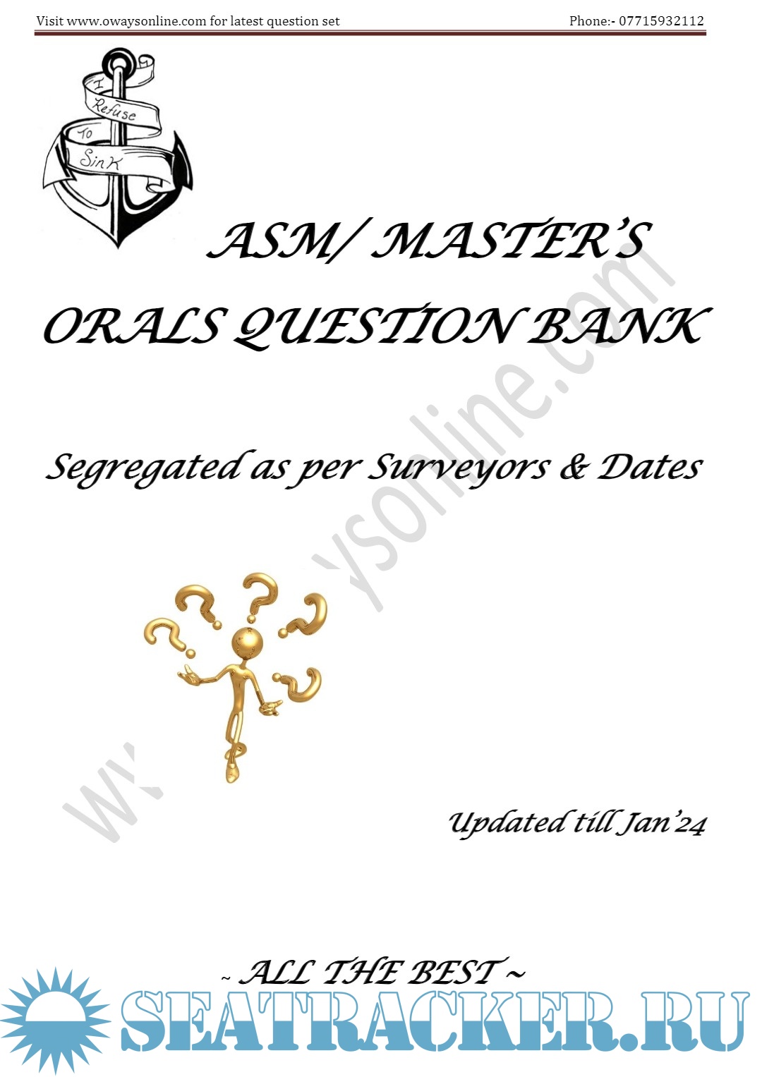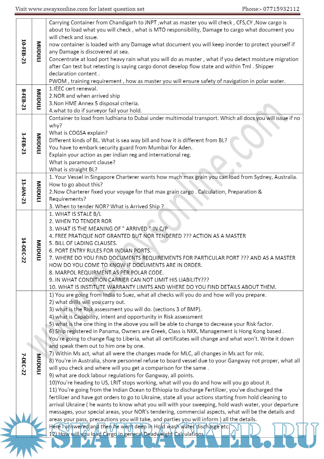 Description: Orals Question Bank for ASM (Advanced Shipboard Management) / Master's Mercantile Marine Department (MMD), India Examinations.