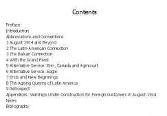 Drawing on extensive archival research, the book begins with an overview of the warships under construction around Europe for foreign customers in August 1914, and how the four ships featured were acquired by the Royal Navy. It then looks at them as manifestations of the international rivalries which directed much of the national budgets of impecunious South American and Balkan states towards armaments. The focus then switches to the British service of the ships completed as battleships, and then to the story of the carrier. Although never finished as a battleship, she would play a crucial role in the development of British carrier aviation. Finally, the author traces the stories of the battleships of the Latin-American naval race from the 1920s down to the 1950s.