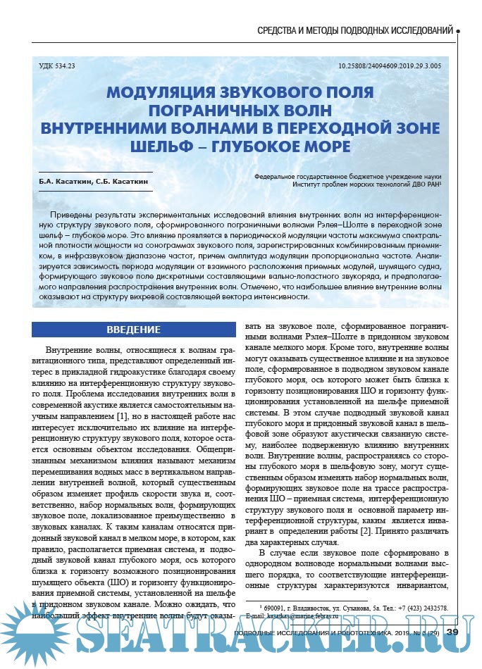 Описание: Научно-технический журнал «Подводные исследования и робототехника» посвящен проблемам исследования и освоения Мирового океана и относится к области знаний, лежащей на стыке наук:- теоретической и прикладной механики, навигации и управления движением, динамики управляемых систем и процессов,- робототехники, мехатроники, автоматизированного конструирования технических устройств, информатики и вычислительной техники,- теоретической и прикладной океанографии, физики океана, гидроакустики, морской геологии, экологии морских акваторий.Цель журнала – систематизировать и объективно отражать все наиболее значимые научно-технические и практические достижения и результаты исследований по освоению подводного пространства и морского дна, способствовать развитию новых идей, средств и методов подводных исследований и робототехники, консолидировать усилия научных и деловых кругов, потенциальных потребителей новейших достижений в сфере подводных технологий.Журнал «Подводные исследования и робототехника» публикует научно-технические статьи, проблемные, обзорные, дискуссионные материалы по всем направлениям, относящимся к методам и техническим средствам исследования и освоения океана, включая подводные аппараты и роботы, акустические, гидрологические, геофизические средства и методы исследования физических полей океана.Авторами публикаций журнала являются авторитетные ученые, ведущие специалисты и молодые исследователи из научных организаций и вузов Москвы и Подмосковья, Санкт-Петербурга, Зарубежья, Дальнего Востока, Урала, Сибири, и других регионов России. Для научного рецензирования и редактирования публикуемых статей привлекаются авторитетные специалисты в соответствующих областях знаний.Читательская аудитория - широкий круг ученых и специалистов, работающих в области исследования морских глубин, деловые круги и потенциальные потребители научно-технических разработок и инновационных проектов, молодые ученые, аспиранты и студенты, специализирующаяся в указанной области.