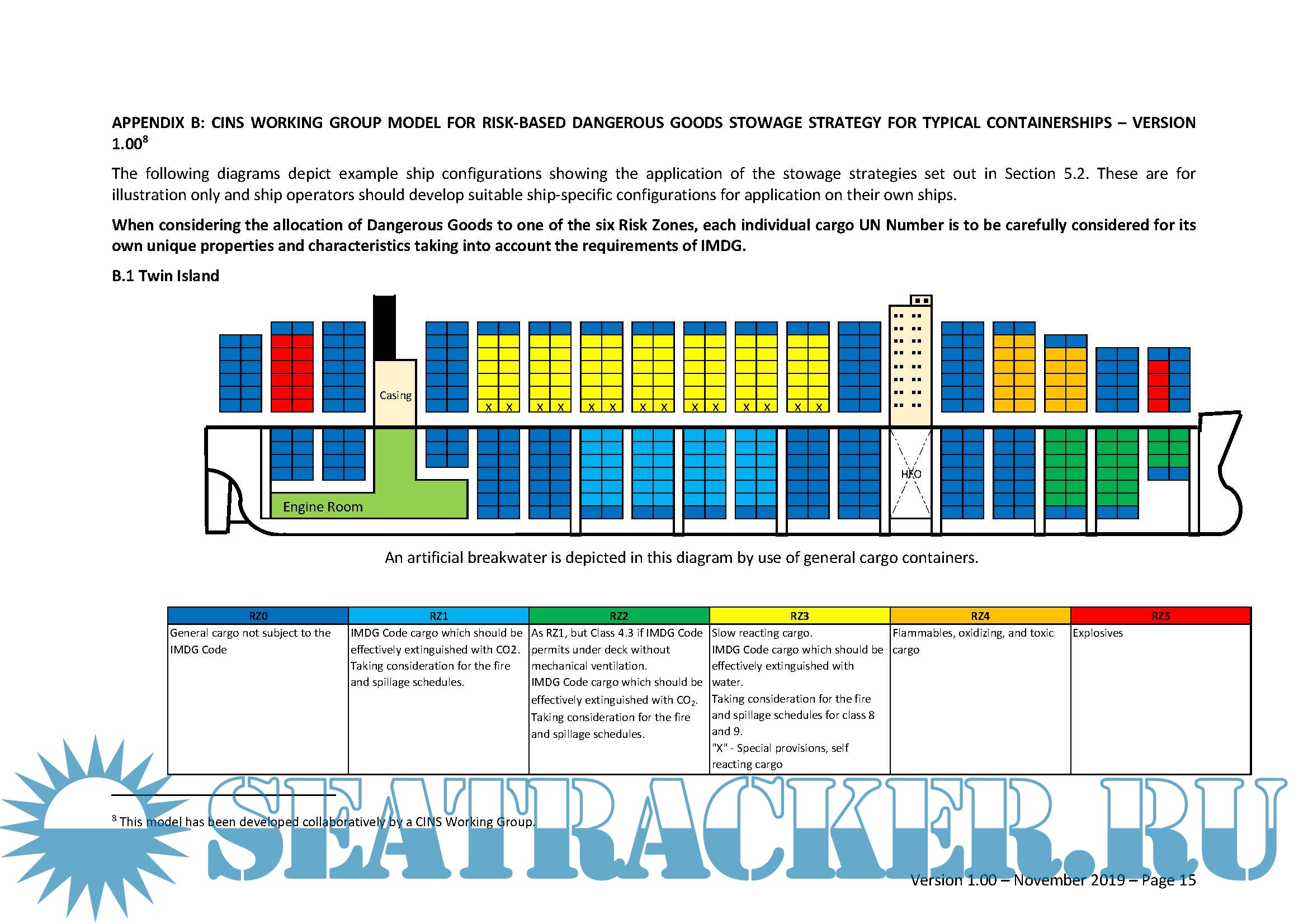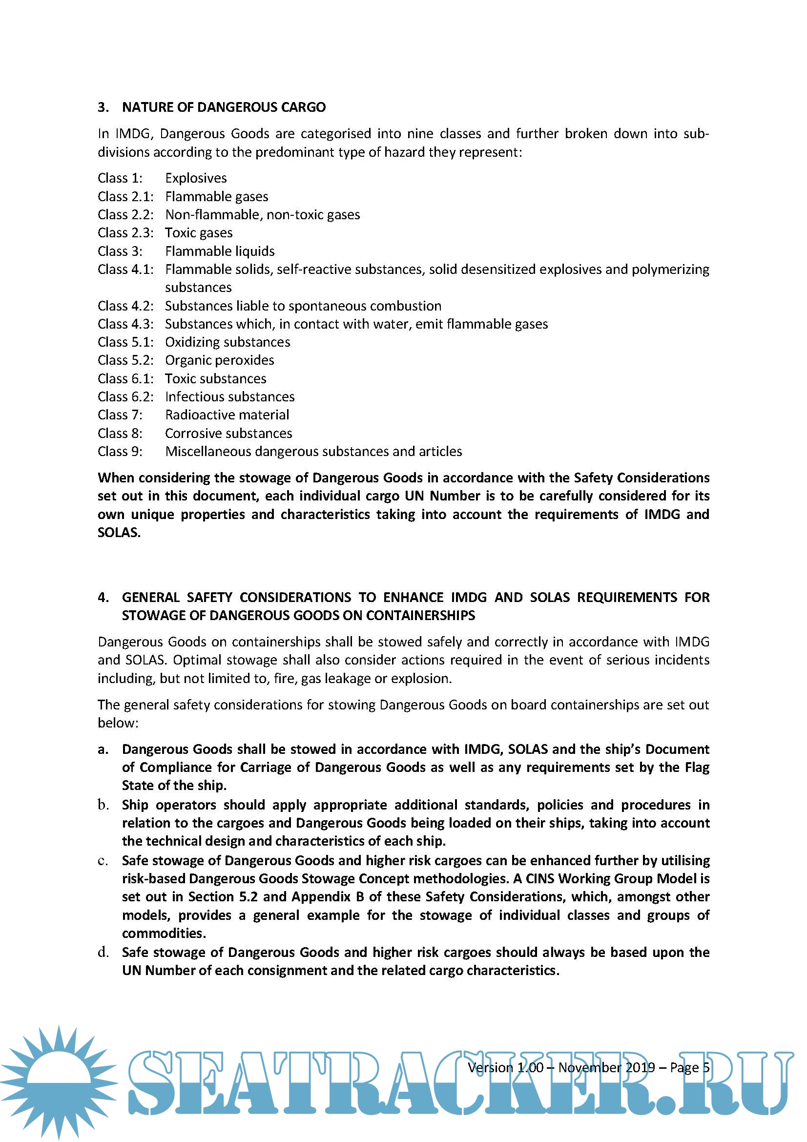 Year: 2019 Language: English Author: [url=http://seatracker.me/tracker.php?nm=CINS[/url] Edition: Version 1.00 November 2019 Format: PDF Quality: eBook Pages count: 18 Description: (Cargo Incident Notification System) and Classification Societies as listed below. The development has been coordinated by American Bureau of Shipping (ABS). The target audience includes ship operators, cargo carriers, and port personnel. The scope of this document is considered to be a first stage in a collective industry approach on this important matter which is designed to enhance safety on board container ships, recognising the significant complexities involved in achieving effective and compliant stowage of containers. Further, arising as they do from serious fire incidents in recent years, often relating to deficiencies in cargo declaration and packing, these Safety Considerations represent one of a number industry and regulatory initiatives.