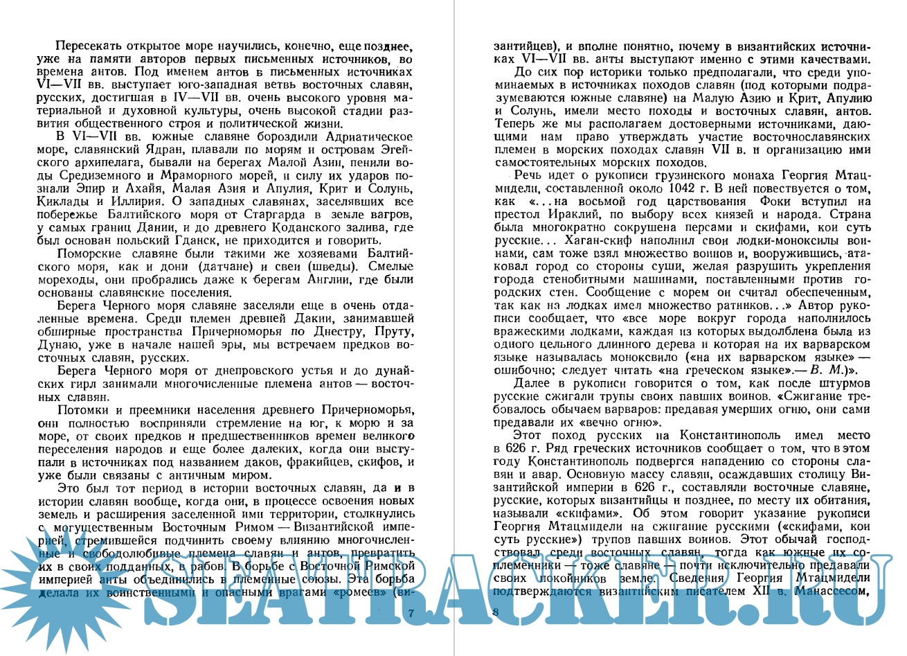 Год выпуска: 1950 Язык: русский Автор: В.В.Мавродин Жанр: История Формат: PDF Качество: Отсканированные страницы Количество страниц: 46 Описание: Автор попытался обобщить материал, накопившийся к сегодняшнему дню, и дает сводку сведений по началу мореходства на Руси. Ибо так начинать русскую историю, как это делала старая официальная дворянско-буржуазная историческая наука означает начинать ее не с начала; так историю мореходства на Руси, как это имеет место в указанных трудах означает приступить к повествованию где-то с середины книги, так начинать историю русского мореходства означает возрождать лживую и антинаучную норманскую теорию.