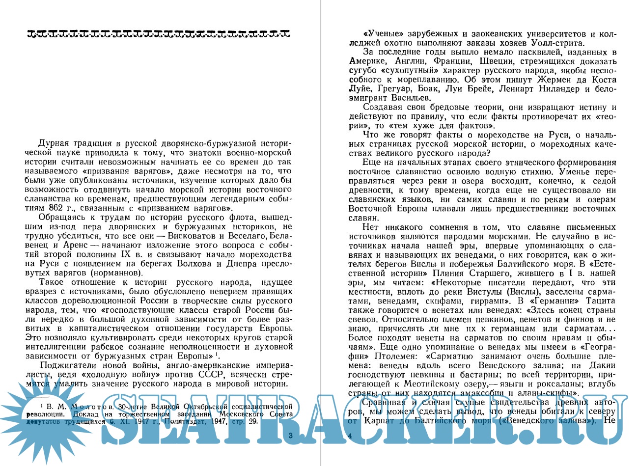 Описание: Автор попытался обобщить материал, накопившийся к сегодняшнему дню, и дает сводку сведений по началу мореходства на Руси. Ибо так начинать русскую историю, как это делала старая официальная дворянско-буржуазная историческая наука означает начинать ее не с начала; так историю мореходства на Руси, как это имеет место в указанных трудах означает приступить к повествованию где-то с середины книги, так начинать историю русского мореходства означает возрождать лживую и антинаучную норманскую теорию.
