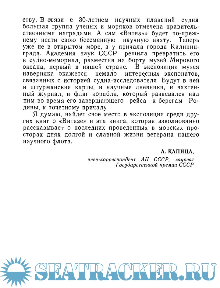 Описание: Автор этих очерков участвовал в научных экспедициях на борту ветерана советского океанологического флота «Витязя». Изучая природу, раскрывая ее сокровенные тайны корабль науки бороздил самые глухие уголки Мирового океана, подходил к берегам далеких островов, исследовал максимальные глубины, загадочный «Бермудский треугольник», шел навстречу тайфунам и штормам.