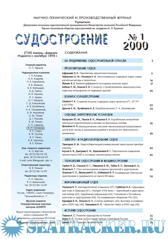Журнал «Судостроение» 1999 год (все 6 выпусков) - группа авторов [1999, PDF]