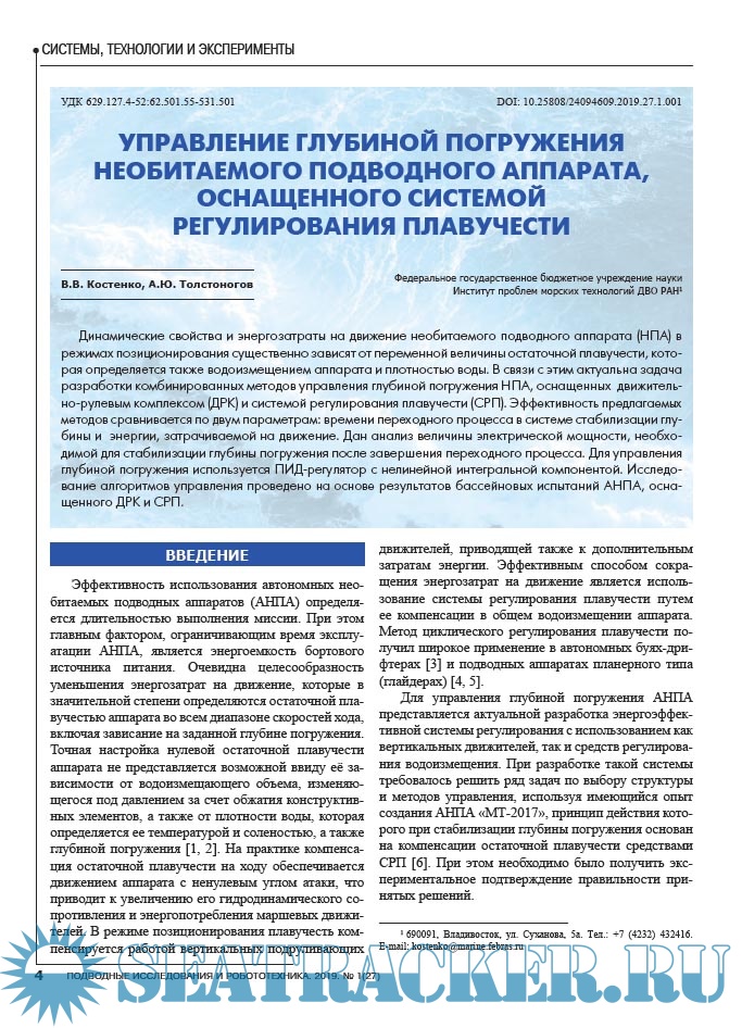 Подводные исследования и робототехника № 29 - группа авторов [2019, PDF]
