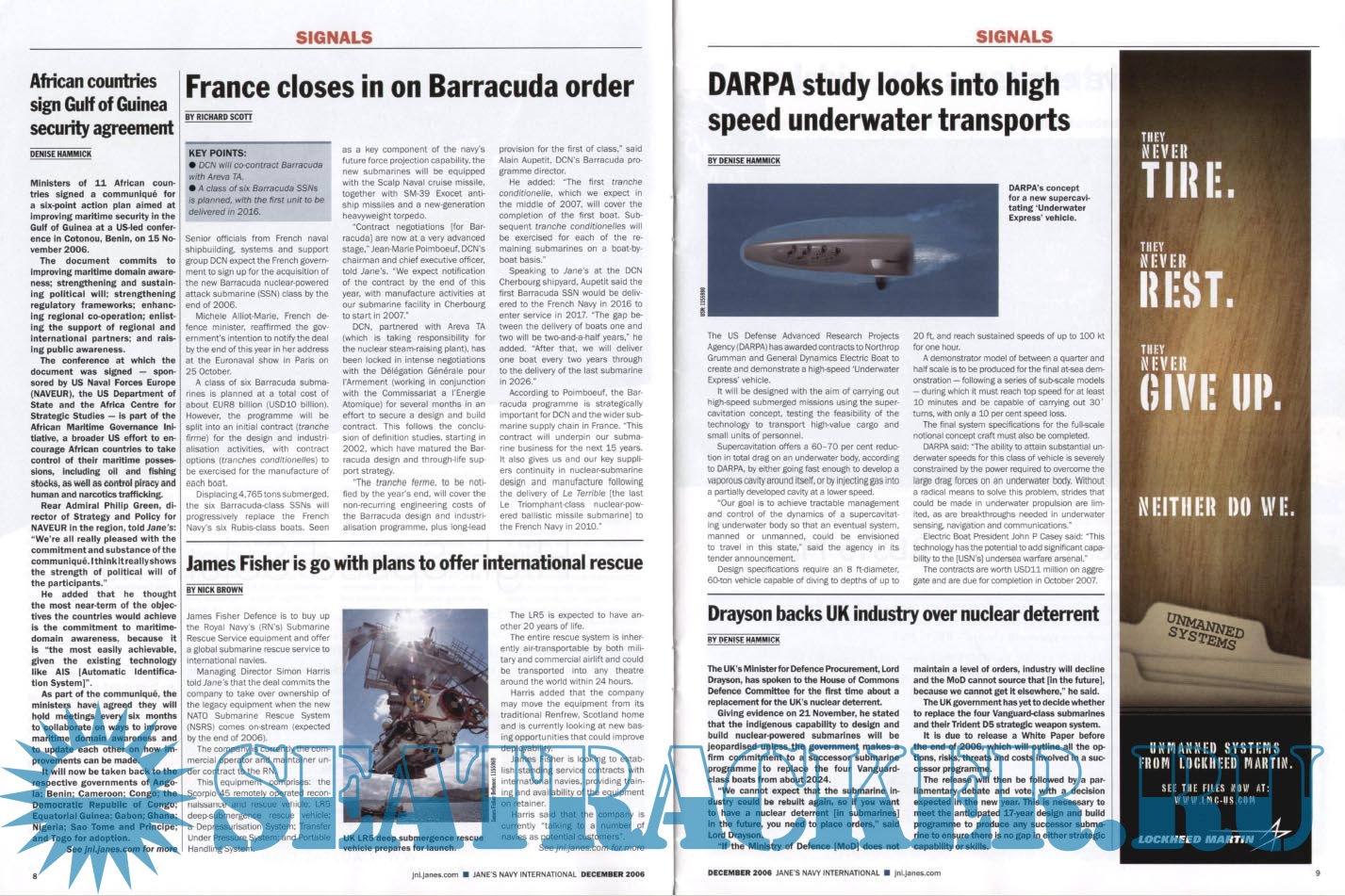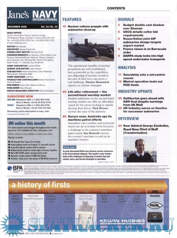 Description: With Jane's Navy International you will receive timely, accurate and impartial coverage of key operations, technology and procurement issues as they affect maritime security. Draw on the authority of Jane's world-renowned expertise to give you informed opinion on naval matters.