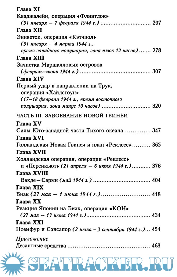 Описание: Очередной том фундаментальной работы Самуэля Элиота Морисона. Он включает в себя расширенное описание кампаний на островах Гилберта и Маршалловых осенью 1943 — зимой 1944 года и окончательного завоевания Новой Гвинеи в 1944 году.
