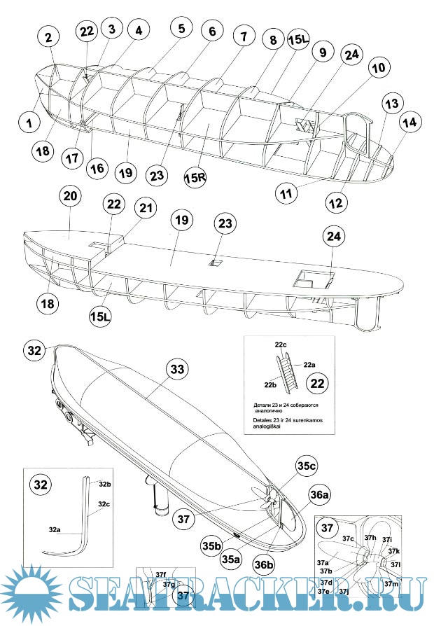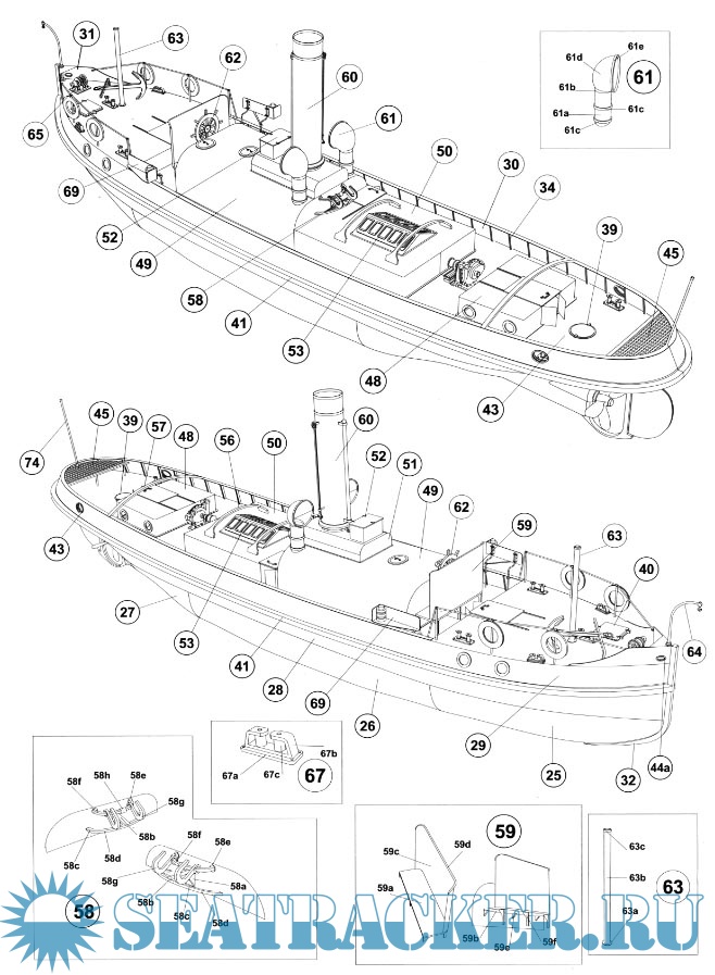 19 листов цветных выкроек и инструкций для изготовления бумажной модели буксира Мариинской водной системы в масштабе 1:100Скриншоты