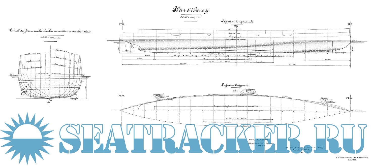 Архивные чертежи французского крейсера 2-го ранга CATINAT 1896 год - нет данных [1896, TIFF]