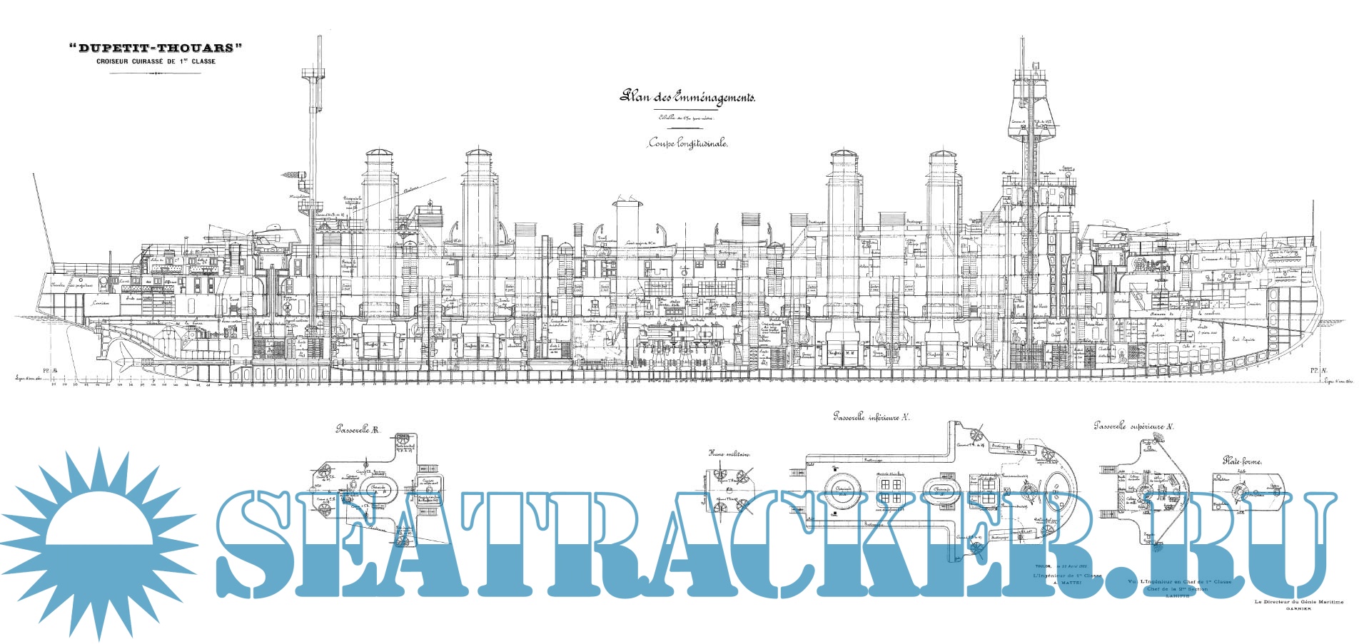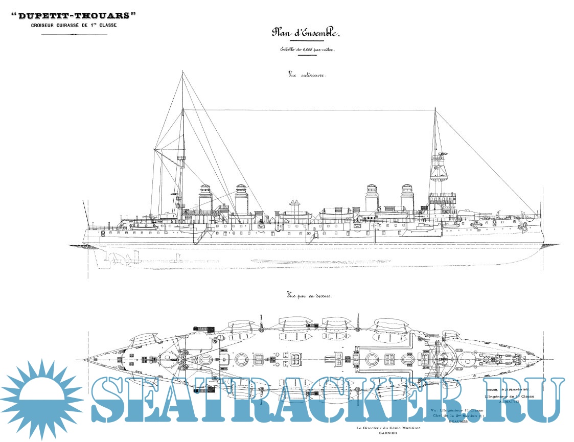 Архивные чертежи французского крейсера 1-го ранга "DUPETIT-THOUARS" 1901 год