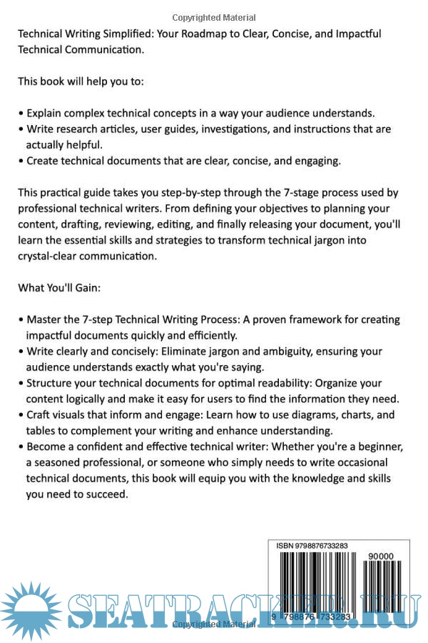Year: 2024 Language: English Author: Karim Panjwani Genre: Guide Publisher: Independently published Edition: January, 2024 ISBN: 9798876733283 Format: EPUB Quality: eBook Pages count: 169 Description: Technical Writing Simplified: Simple yet effective, 7-step Technical Writing Process that anyone can use to write documents such as user guides, research papers, and procedures to excel professionally. Do you struggle to: - Explain complex technical concepts in a way your audience understands? - Create technical documents that are clear, concise, and engaging? - Write research articles, user guides, investigations, and instructions that are actually helpful? If so, "Technical Writing Simplified" is your answer. This practical guide takes you step-by-step through the 7-stage process used by professional technical writers. From defining your objectives to planning your content, drafting, reviewing, editing, and finally releasing your document, you'll learn the essential skills and strategies to transform technical jargon into crystal-clear communication. This technical writing handbook is practical guide to technical writing. This is not just for ‘dummies’, but for anyone who wants to improve their technical writing skills. The book will be helpful who wants to progress in technical writing career. This Manual for Writers is also useful for those involved in technical writing for life science or wants to be successful in technical writing job.