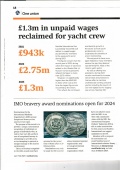 Regular readers of the Telegraph will also be aware of Nautilus's record of reclaiming unpaid wages. This has continued, with a judgment in Antigua's High Court granting more than a year's worth of backpay for crew of the yacht Alfa Nero. It's an important win on untested legal territory, as the case arose due to sanctions related to Russia's invasion of Ukraine (page 19).