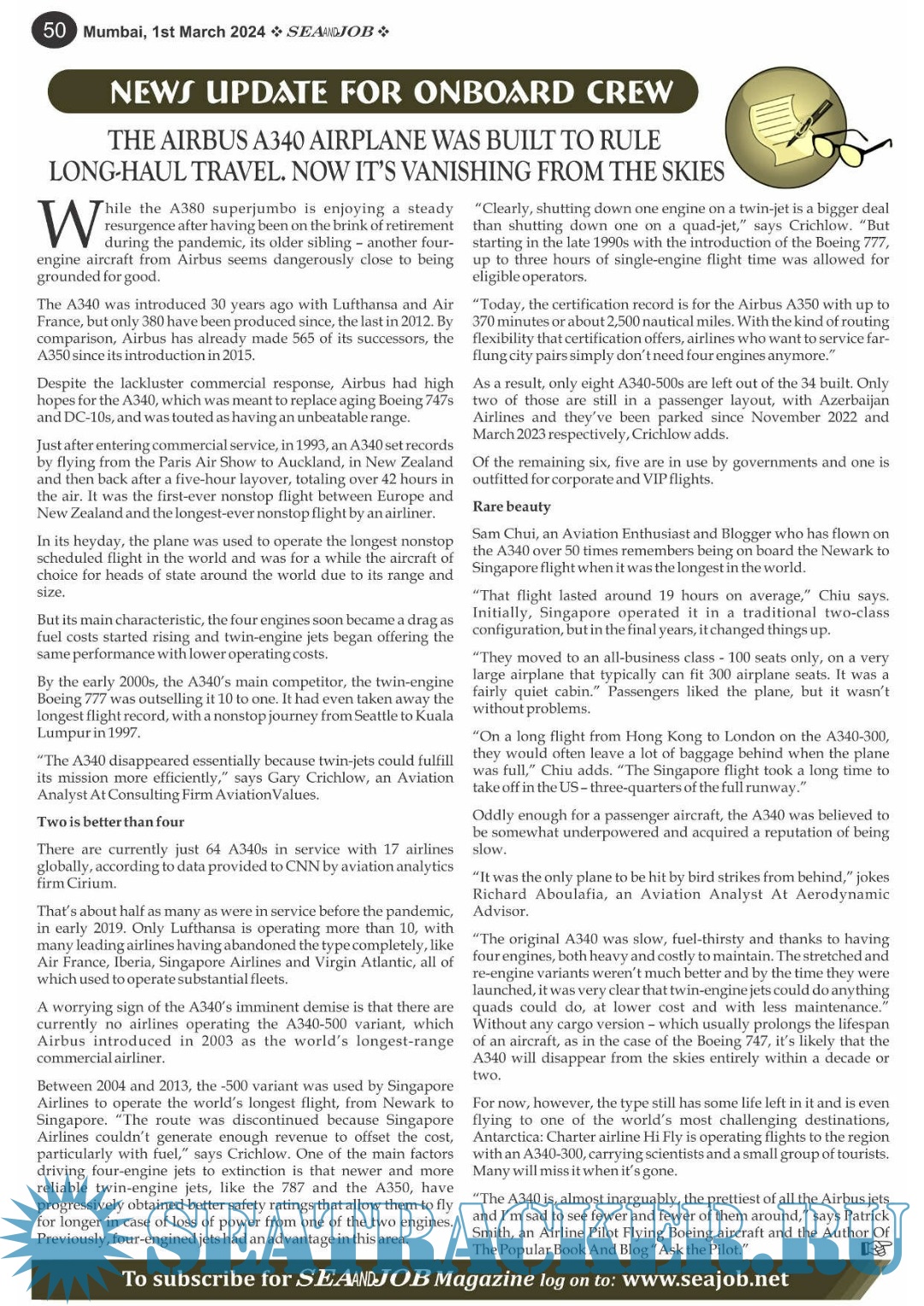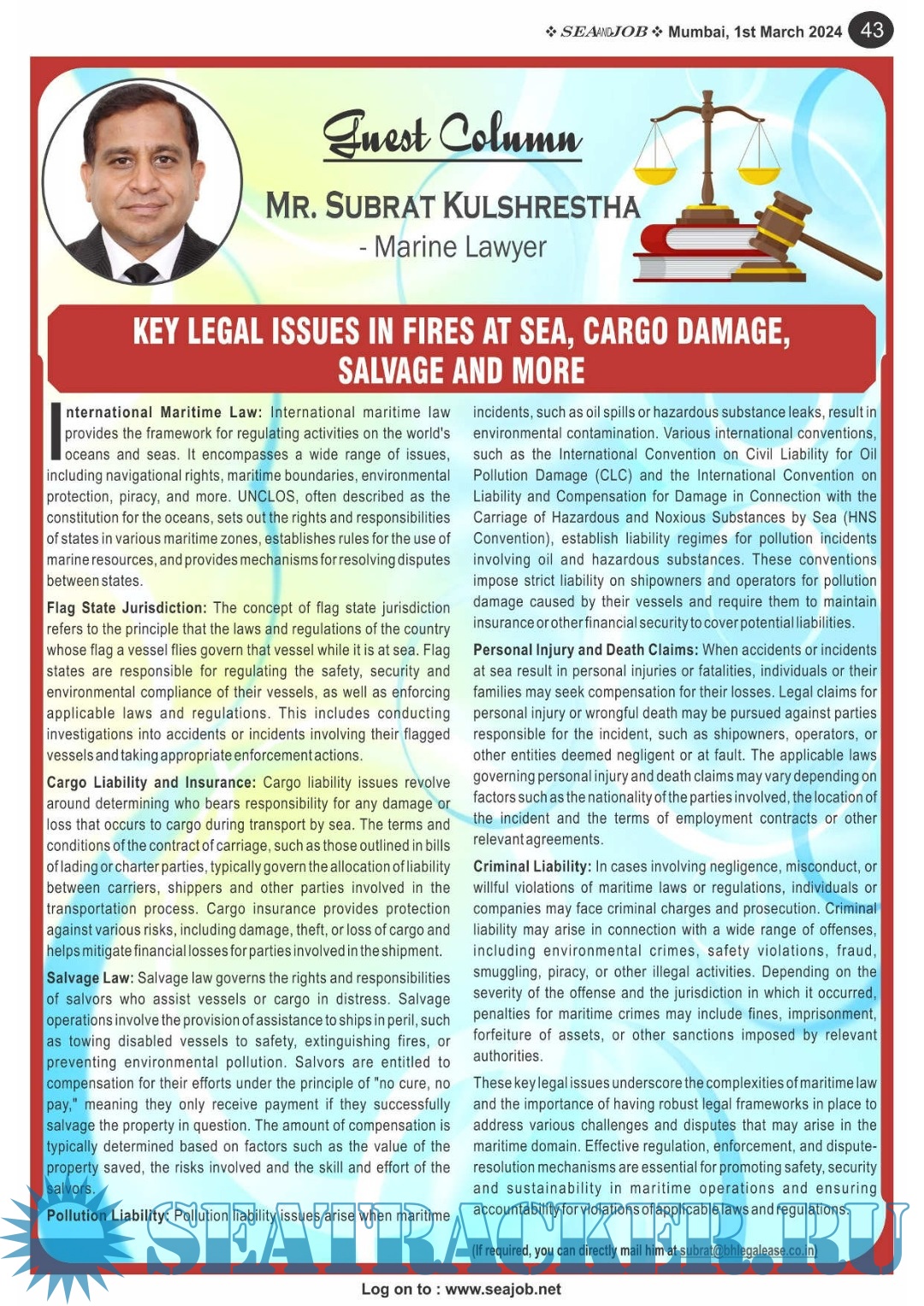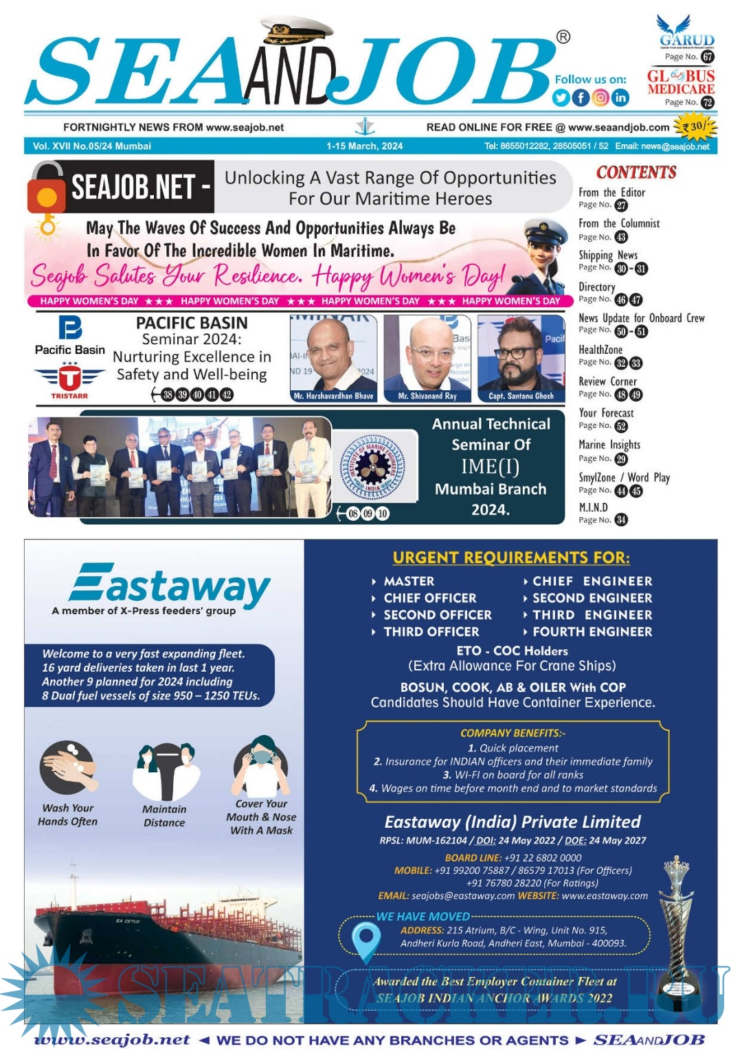 Description: The Sea and Job magazine launched in May 2007, was the second venture of Sea Line Group succeeding 'seajob.net' bringing the much renowned essence to the Group, the Sea and Job Magazine quickly gained popularity, becoming the No. 1 Shipping Magazine that came to be widely circulated all over India. Sea and Job over the years has evolved as the most trusted, ethical, objective and read maritime publication that possesses a large database of subscribers from various verticals in the industry.The magazine provides informative and interesting articles covering not just the shipping world but also the world outside it.Sea and Job is also a medium for the shipping/ manning companies to advertise marine jobs and also to promote their organization by publicizing internal activities like seminars, sports events and parties.Some notable endeavors of the magazine include the Know Your Recruiter Column, the Sailing Episodes Column and the Marine Insights section. The consistent efforts and the dedication to provide extraordinary services to the industry has resulted in the magnifying popularity and patronage of Sea and Job.