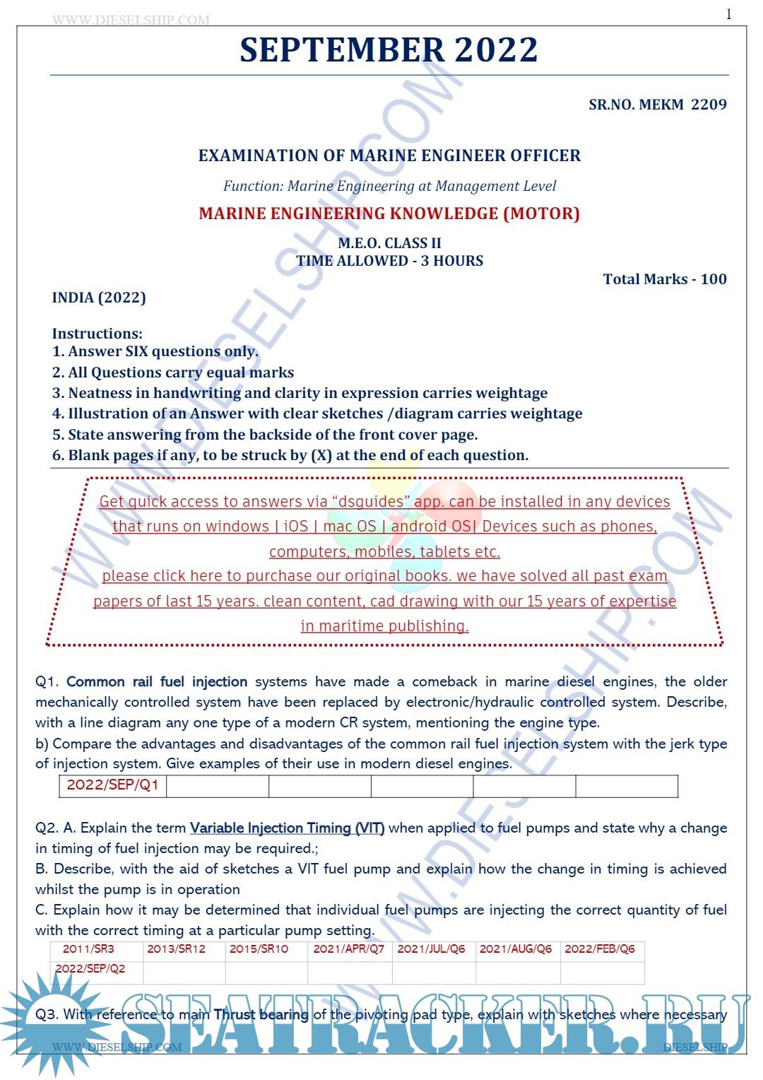 Description: M.E.O. Class II Question Paper set for Mercantile Marine Department (MMD), D.G. Shipping India Exams.