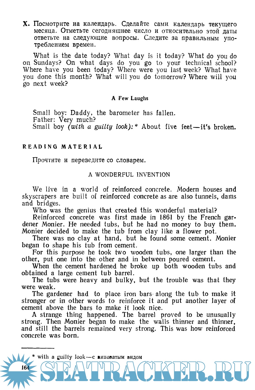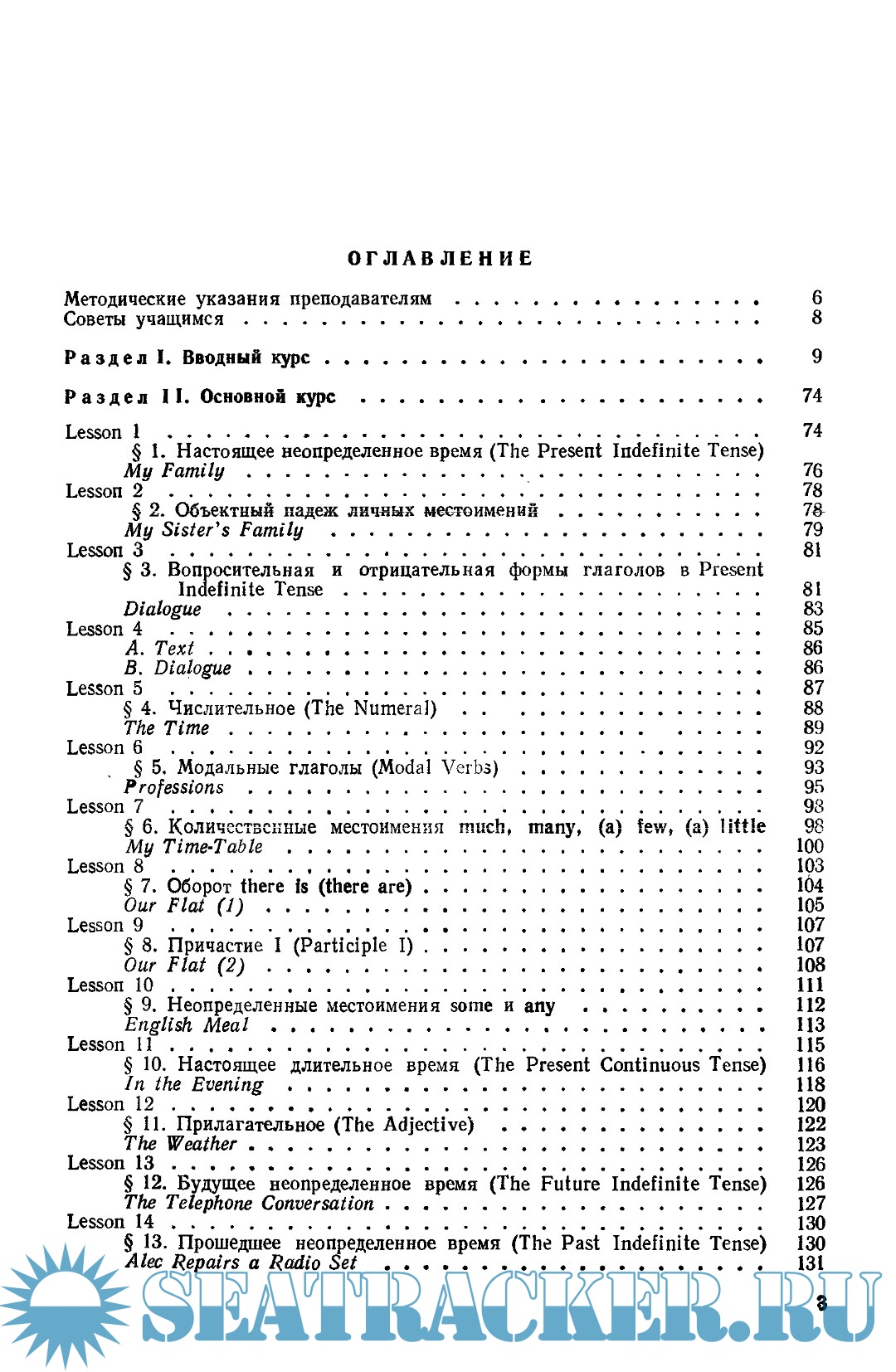 Год выпуска: 1980 Язык: Русский / Английский Автор: Парахина А.В., Чернухин А.Е. Жанр: Учебное пособие Издательство: Высшая школа Формат: PDF Качество: Отсканированные страницы Количество страниц: 336 Описание: Данный учебник предназначен для учащихся вечернего и заочного отделений средних специальных учебных заведений. Основная цель изучения иностранного языка в техникумах — практическое овладение языком, под которым подразумевается чтение и перевод литературы средней трудности по специальности и элементарные навыки устной речи по тематике, предусмотренной программой. Этим определяется структура учебника, отбор и система подачи грамматического материала, а также характер упражнений.