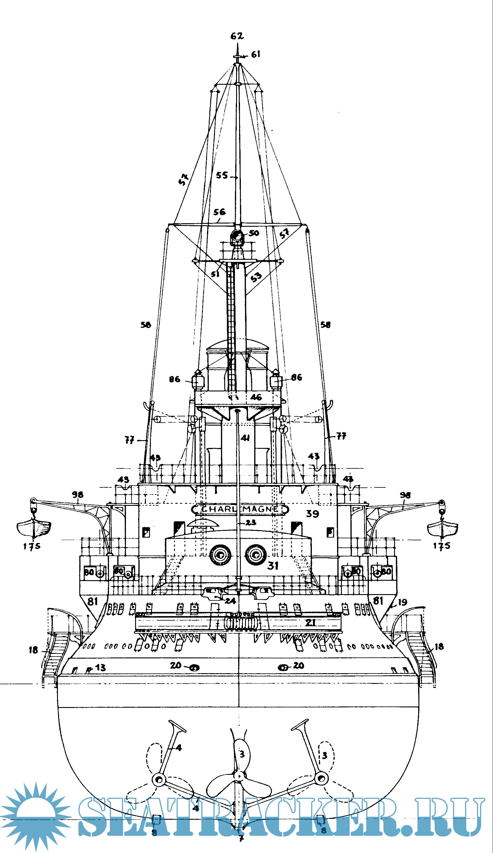 Архивные чертежи эскадренного броненосца CHARLEMAGNE (Франция) 1895 год - нет данных [1895, TIF]