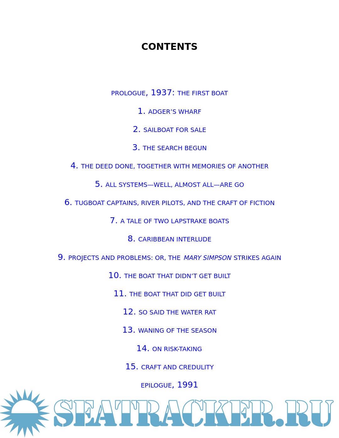 Year: 2007 Language: English Author: Rubin L.D. Genre: Technical book Publisher: Grove Atlantic ISBN: 978-0-8021-9671-2 Format: PDF/EPUB Quality: eBook Pages count: 292 Description: Small Craft Advisory is an enchanting book about Louis Rubin’s obsession with boats and his years of often hilarious boating adventures. When Louis Rubin was thirteen, he built a leaky little boat and paddled it out to the edge of the ship channel in Charleston, South Carolina, where he felt the inexorable pull of the water. Fifty years and dozens of boats latersailboats, powerboats, inboards and outboardsthe pull is as strong as ever. In the tradition established by Mark Twain, Joseph Conrad, and Herman Melville, distinguished author and scholar Louis Rubin explores man’s longtime passion for boats. He examines the compulsion that has prompted him and hundreds of thousands of other non-nautical persons to spend so much time, and no small portion of their incomes, on watercraft that they can use only infrequently. As his new boat (a cabin cruiser made of wood on a workboat hull) is being built, Rubin tells of his past boats and numerous boating disasters and draws a poignant comparison between his two passions: watercraft and the craft of writing. Anyone who has ever bought and owned a boator wondered why people are obsessed by themwill love this amusing, evocative, beautifully crafted memoir by an inveterate boat-owner.