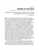 "Life and circumstance had left me working flat out trying to maintain my professional position, be a good father, and keep everything together. At the late-night end of many days, I found myself mumbling: 'I can't keep doing this, this is killing me, I'm dying.' It wasn't a question of wanting out of the parenting role, or the business role, but I needed a third ball for balance . . ." "To be at sea is to be in a different world, and to live alone for a time in this alien place can yield a spiritual calm. . . . In such a calm, order and perspective can enter your thoughts. Life can be harsh at sea, but it is never sordid. The simple necessities of food, drink, and sleep are received with gratitude, and always there is the sea's reminder that you are a speck of dust in the cosmos. The rush of thoughts slows, and order replaces the chaos as you consider your journey." -- From the book