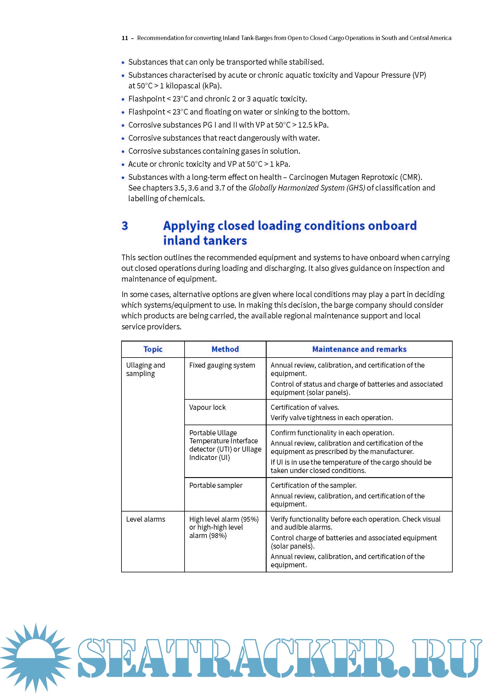 Year: 2024 Language: English Author: OCIMF Genre: Practical guide Edition: March, 2024 Format: PDF Quality: eBook Pages count: 20 Description: This information paper gives technical guidance to regional barge companies in South and Central America (SCA) on how to build or convert their inland barges for loading and unloading operations under closed conditions, to conform to international standards and industry guidance. OCIMF publications and industry good practice form the basis of this guidance, which addresses the procedures and equipment needed to comply with this safety precaution during operations at terminals or between two barges. Open loading raises the risk of fire or explosion during port calls when exiting tank vapours mix with the surrounding air, increasing the risk of developing a combustible atmosphere. Entering the flammable range, the vapours can ignite when exposed to an ignition source. This becomes a dangerous situation if equipment in the area is not properly grounded and maintained to ensure intrinsic safety. Closed loading operations take place without opening ullage or sighting ports, which lowers the safety risks outlined above. Closed cargo operations can also lessen the environmental impact of loading and discharging cargo through better control of emissions.