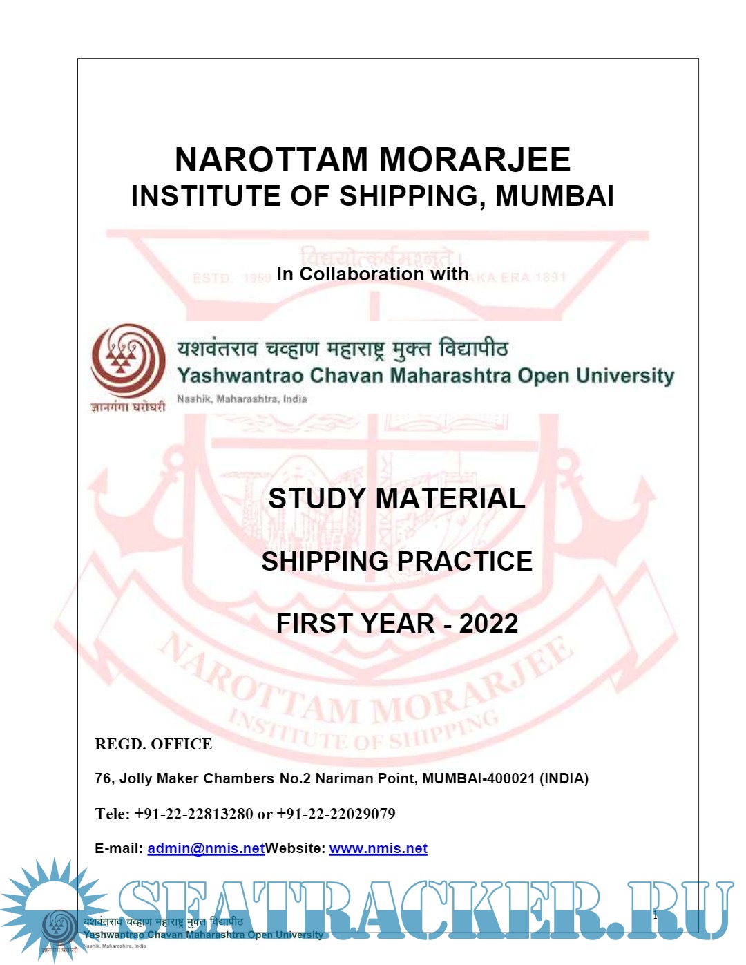 Description: Shipping Practices Reference Book of NAROTTAM MORARJEE INSTITUTE OF SHIPPING (NMIS) institute for First Year Student.