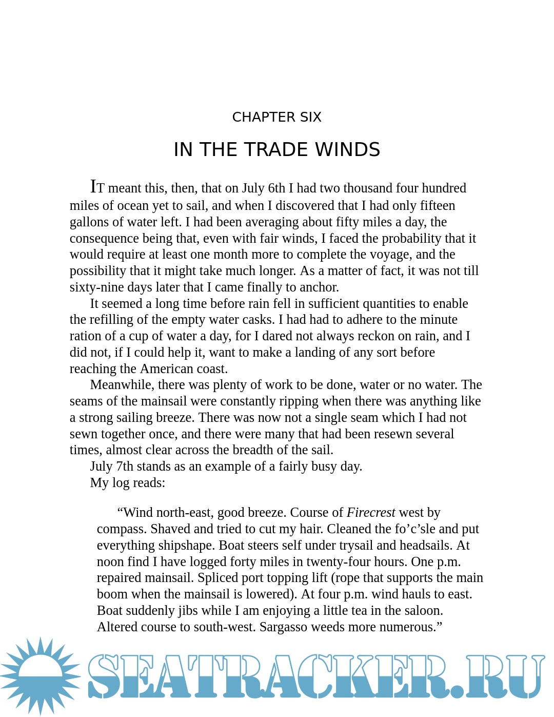 Description: "The name of Alain Gerbault has become a legend with small-boat sailors... Gerbault was one of the first men to achieve the crossing of the Atlantic single-handed from east to west ; his voyage inspired others to follow in his wake ; the experience he gained in deep sea navigation, and in the arrangement of his sails best suited to the Trade Winds, was written down in The Flight of theFirecrest, information which was (and still is) indispensable reading for those who came after him. The Firecrest was an English cutter 39 ft. overall, built in 1892. The author purchased her in 1921, sailed her to Cannes, and set out for Gibralter and the Atlantic in April 1923. He arrived in New York 101 days later, after a voyage of great endurance. His sails were tornto ribbons, the main supply of his drinking water spoiled, and he lay beca lmed in tropical heat with only a cup of fresh water a day. The rains came just in time to save him from death by thirst. Alain Gerbault's grave in Bora-Bora, one of the Oceanic Leeward Isles group, is a sober monument, embellished with a medallion of the navigator. His defence of the native cause in the South Seas islands has ensured the permanence of his name in the annals of sociology. This book perpetuates his renown as an ocean-going yachtsman." -- from book jacket.