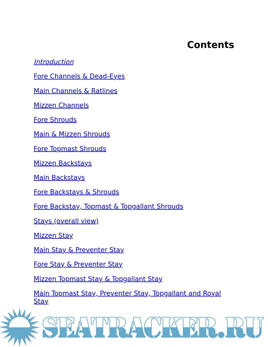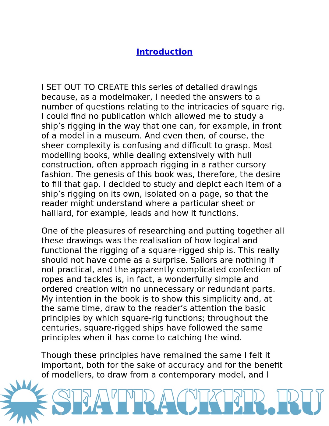Year: 2011 Language: English Author: Petersson L. Genre: Manual Publisher: Seaforth Publishing ISBN: 978 1 84832 102 1 Format: PDF/EPUB Quality: eBook Pages count: 142 Description: A fully illustrated guide to rigging models of historic ships with confidence and accuracy, using a model of the eighteenth-century HMS Melampus. The rigging of period ship models is the ultimate challenge for any modeler. An eighteenth-century man-of-war boasted mile on mile of rigging, more than one thousand blocks, and acres of canvas. To reduce this in scale, and yet retain an accurate representation, is an awesome undertaking. In this classic work, Lennarth Peterson untangles the complexities of model rigging. Using some four hundred drawings, he shows how each separate item of rigging is fitted to the masts, yards, and sails. Each drawing deals with only one particular item so that it can be seen clearly in isolation. The lead of a particular halyard, the arrangement of a bracing line—these and every other detail are depicted with startling clarity. Based on the author’s research of numerous eighteenth-century models, each one with its contemporary rigging still extant, the information is both meticulous and accurate. The remarkable visual immediacy and clarity of this work makes it truly unique and essential for any period ship modeler. In addition, the book is a “must-have” reference work for all those involved in the rigging and repair of historic ships.