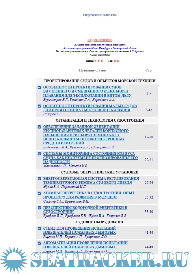 Журнал «Судостроение» 877 ноябрь-декабрь - группа авторов [2024, PDF]