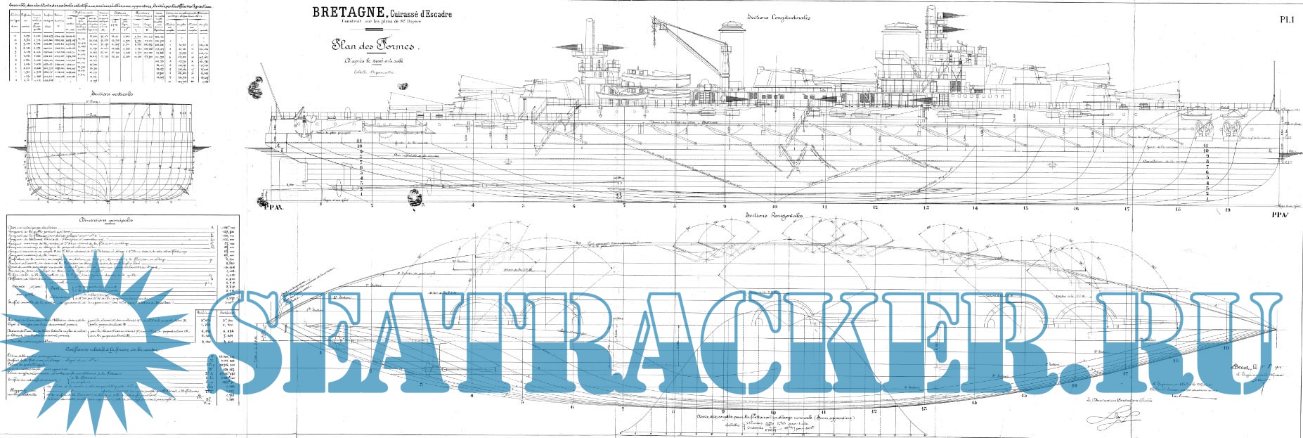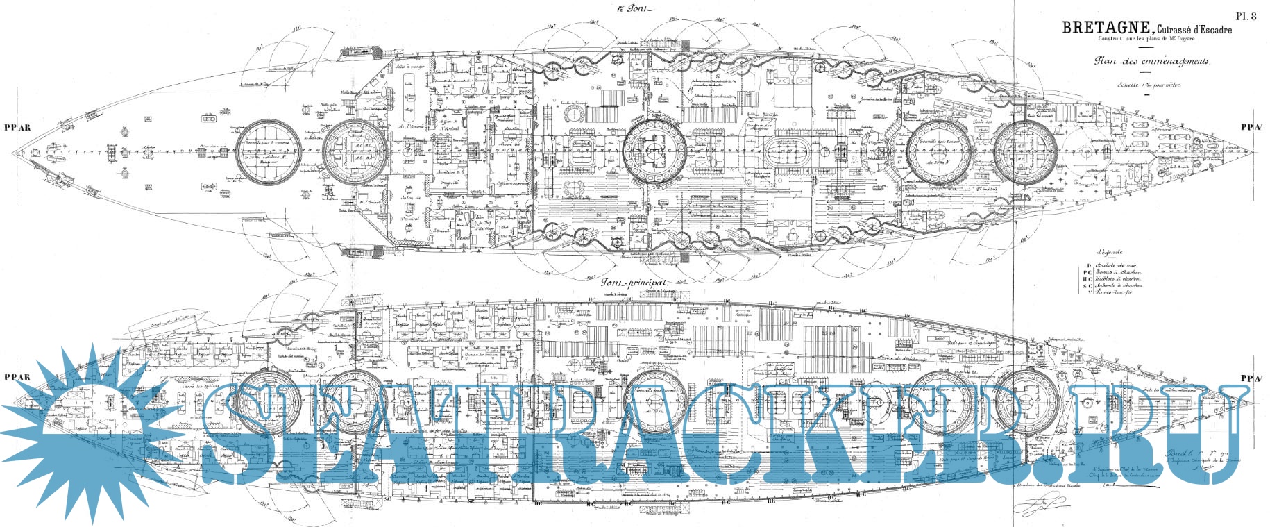 Архивные чертежи французского броненосца BRETAGNE 1913 год