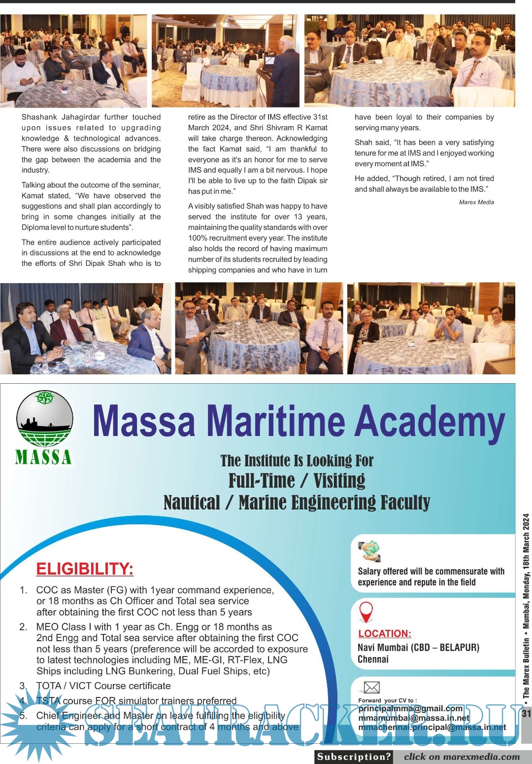 Description: The No 1 Twice weekly employment magazine for Seafarers.The Leading magazine for seafarers to locate Ship-board Employment opportunities, Training Institutes, Shipping companies.Online version: https://issuu.com/marexmediapvtltd