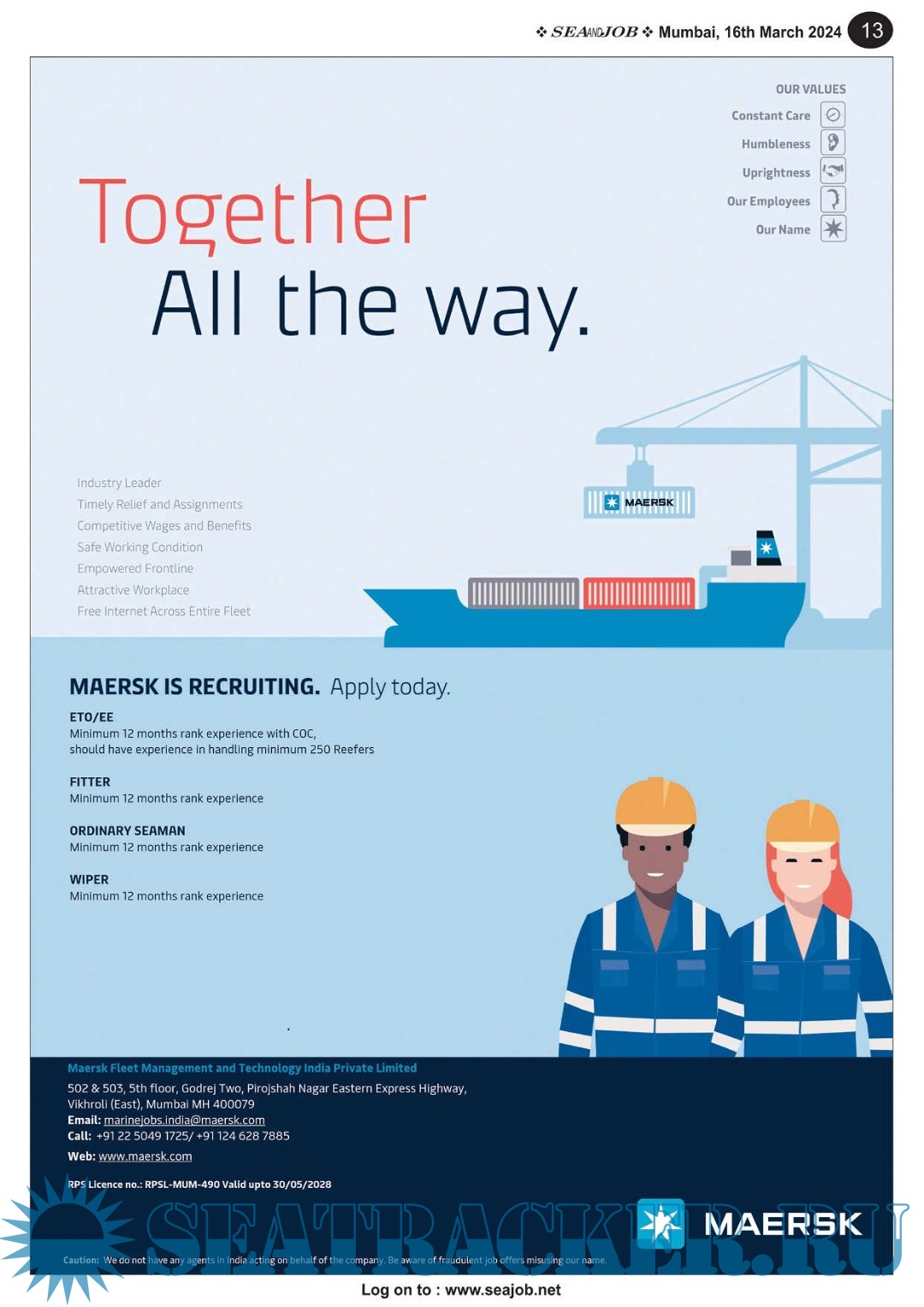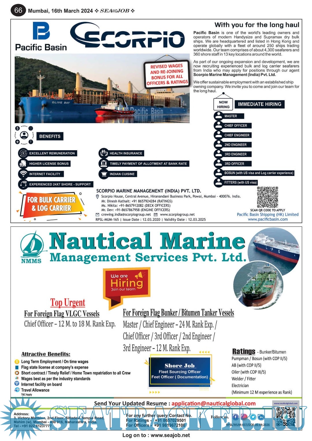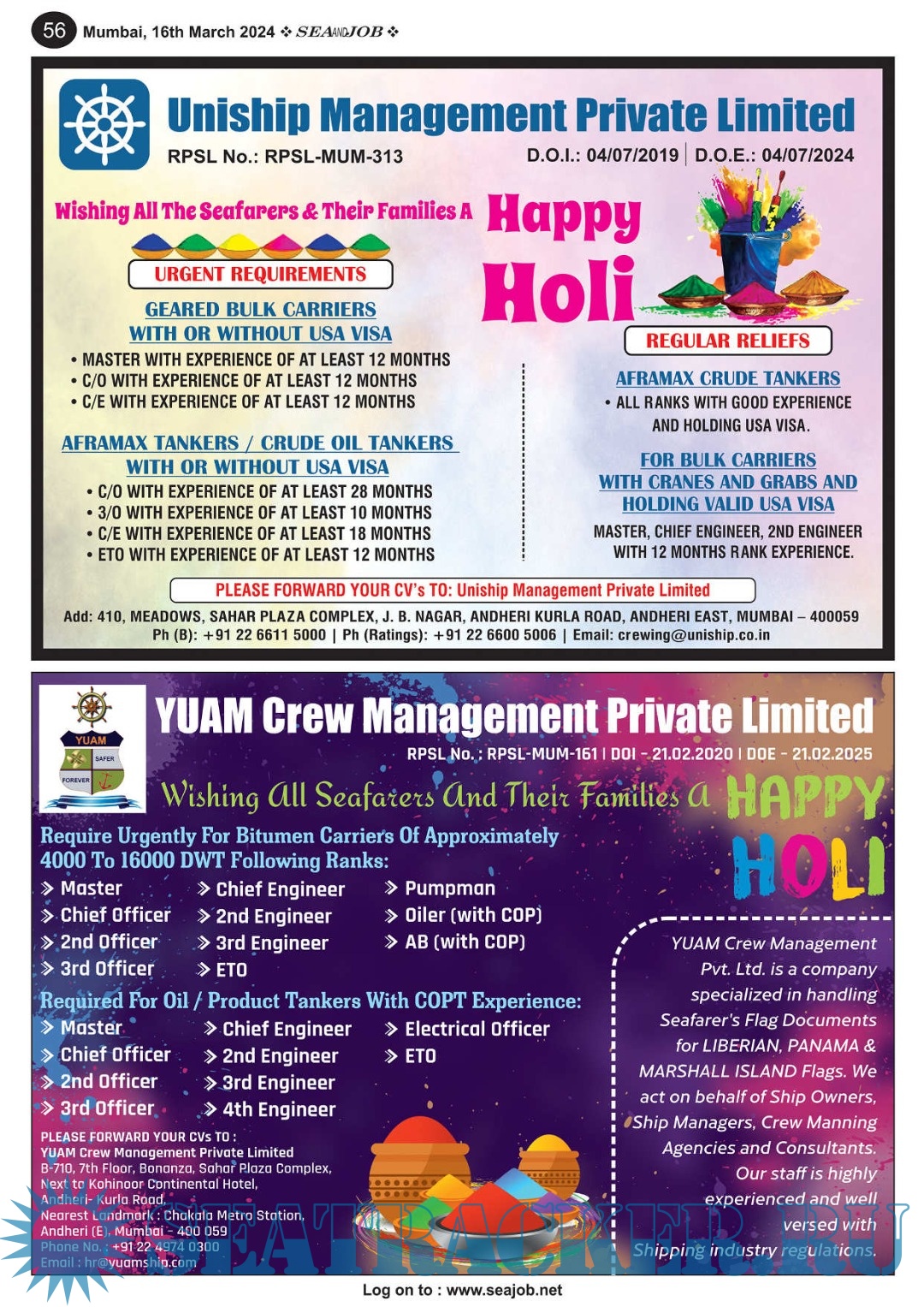 Description: The Sea and Job magazine launched in May 2007, was the second venture of Sea Line Group succeeding 'seajob.net' bringing the much renowned essence to the Group, the Sea and Job Magazine quickly gained popularity, becoming the No. 1 Shipping Magazine that came to be widely circulated all over India. Sea and Job over the years has evolved as the most trusted, ethical, objective and read maritime publication that possesses a large database of subscribers from various verticals in the industry.The magazine provides informative and interesting articles covering not just the shipping world but also the world outside it.Sea and Job is also a medium for the shipping/ manning companies to advertise marine jobs and also to promote their organization by publicizing internal activities like seminars, sports events and parties.Some notable endeavors of the magazine include the Know Your Recruiter Column, the Sailing Episodes Column and the Marine Insights section. The consistent efforts and the dedication to provide extraordinary services to the industry has resulted in the magnifying popularity and patronage of Sea and Job.